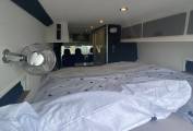 The sleeping area layout boasts a queen size bed, accessed with a short ladder, made comfortable with spotlights, USB points and wall mounted fans for either side for added comfort.