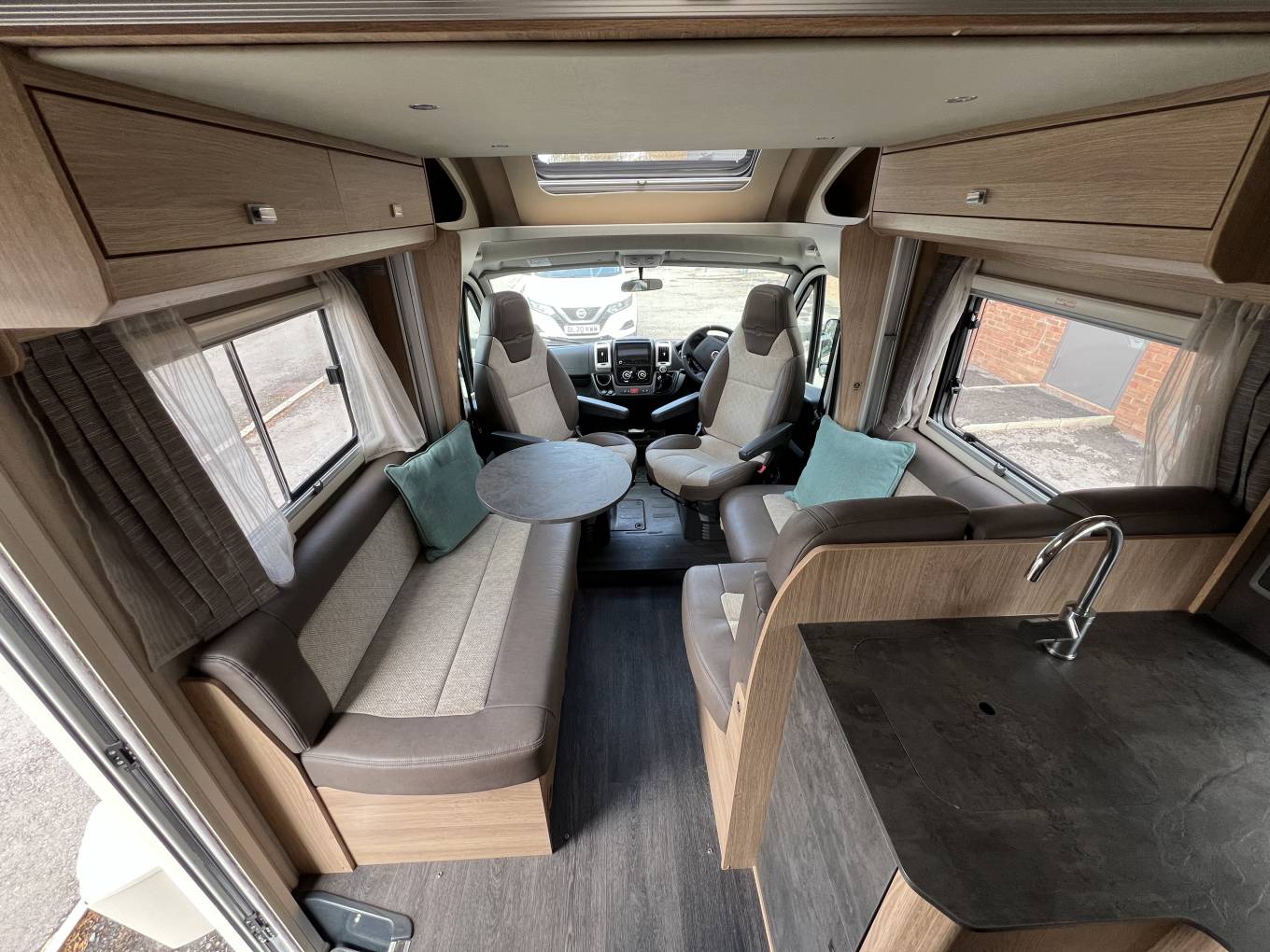 Call with any questions on 01423 609985. This 2022, Autotrail Tracker FB, is a lovely, well presented, 4 berth coachbuilt motorhome. Briefly, there is a washroom at the rear next to the rear fixed bed, kitchen, L shape sofa, small sofa, electric drop down bed, 2 swivel seats and loads of storage. It is 7.09 metres long, with only 6,174 miles on the clock.