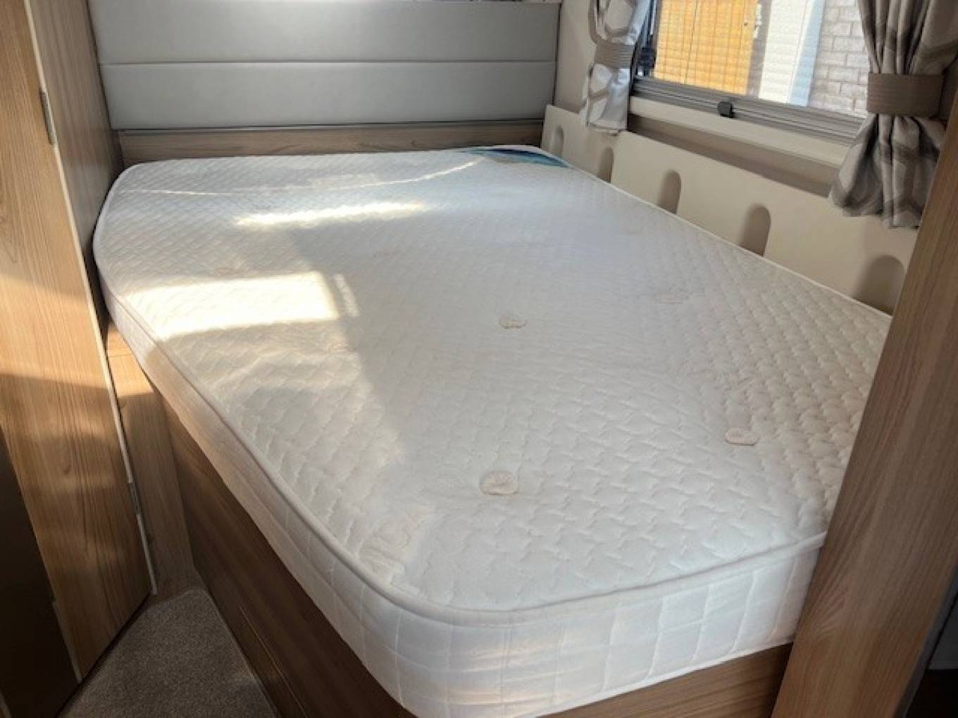 Sleeping is via the Luxury Rear Fixed French Bed - this bed also lifts to access a Very Large Storage Space. There is also a Rear Bedroom Privacy Door. An Additional Double can also be made in seconds from the Bench Seating