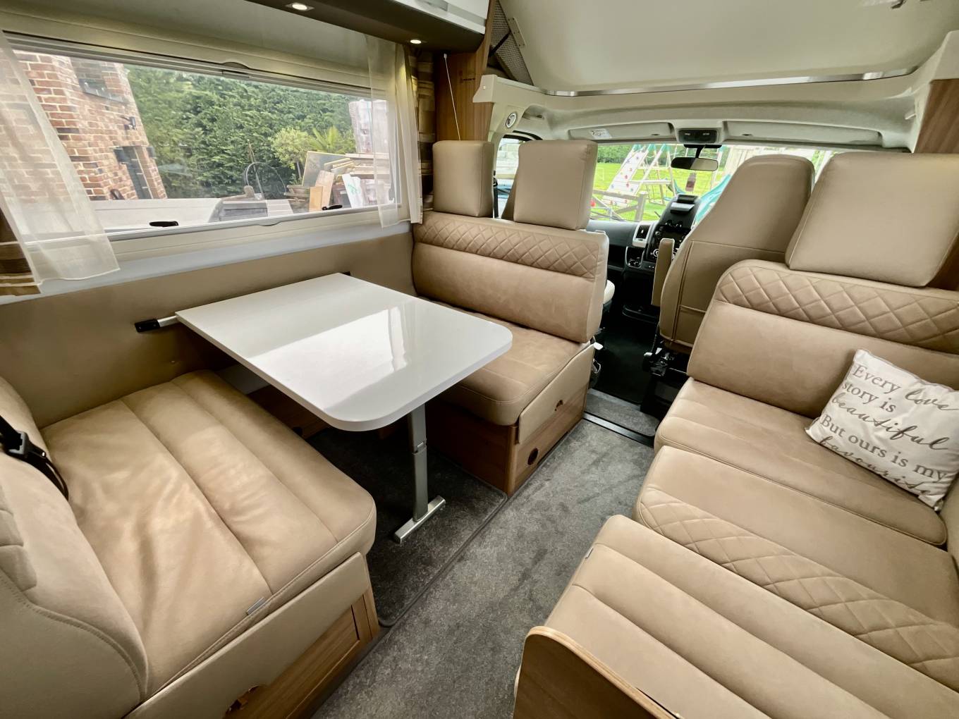 The XL 670 comes with a large double dinette lounge that can comfortably seat six around the large table that is great for meal times and socialising. Natural light comes in through the large skylights and the LED touch lights positioned through the vehicle.