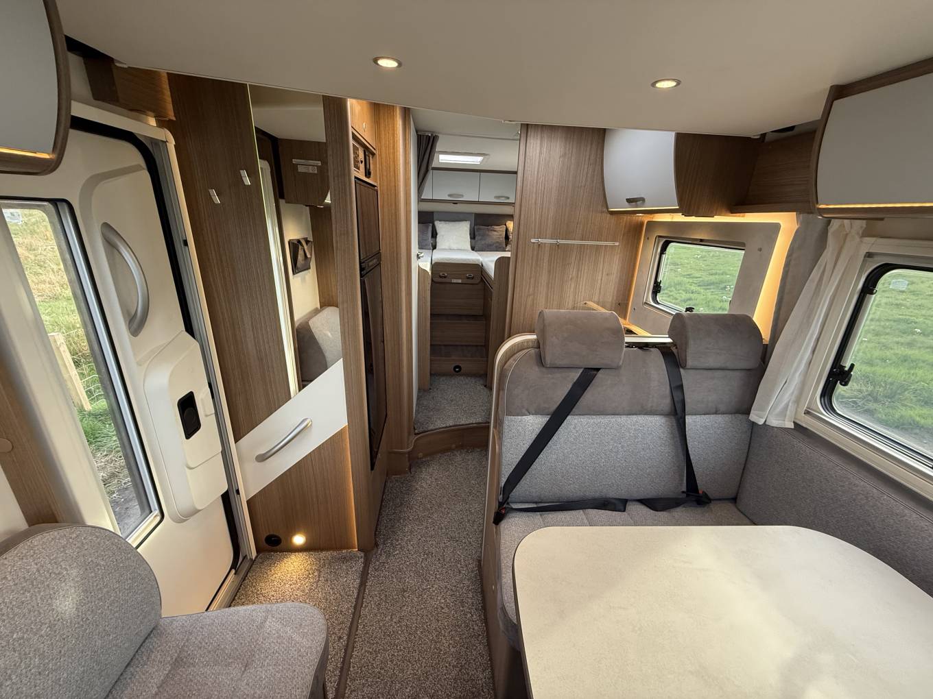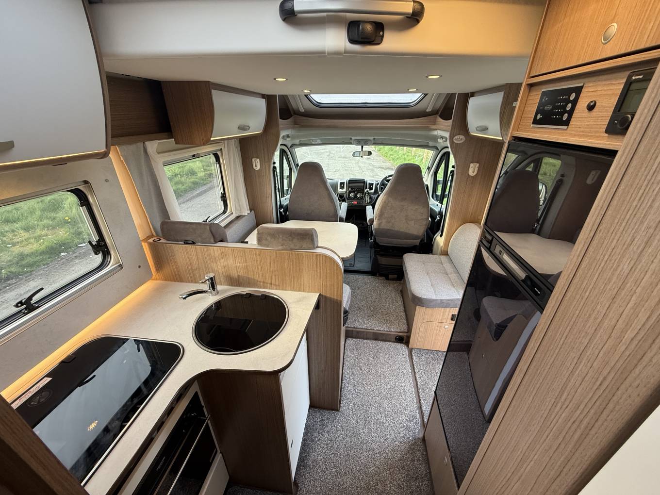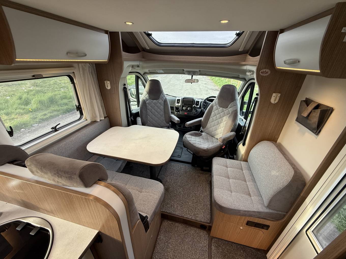 Extras included in the motorhome are Fixed awning, Gaslow easy refillable gas system, Tow Bar, WIFI system, Concertina surround cab blinds, Avtex TV, and it has the up to date XZENT built in entertainment system including full media, Bluetooth, SatNav, DAB Radio and Reversing camera.