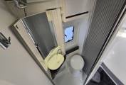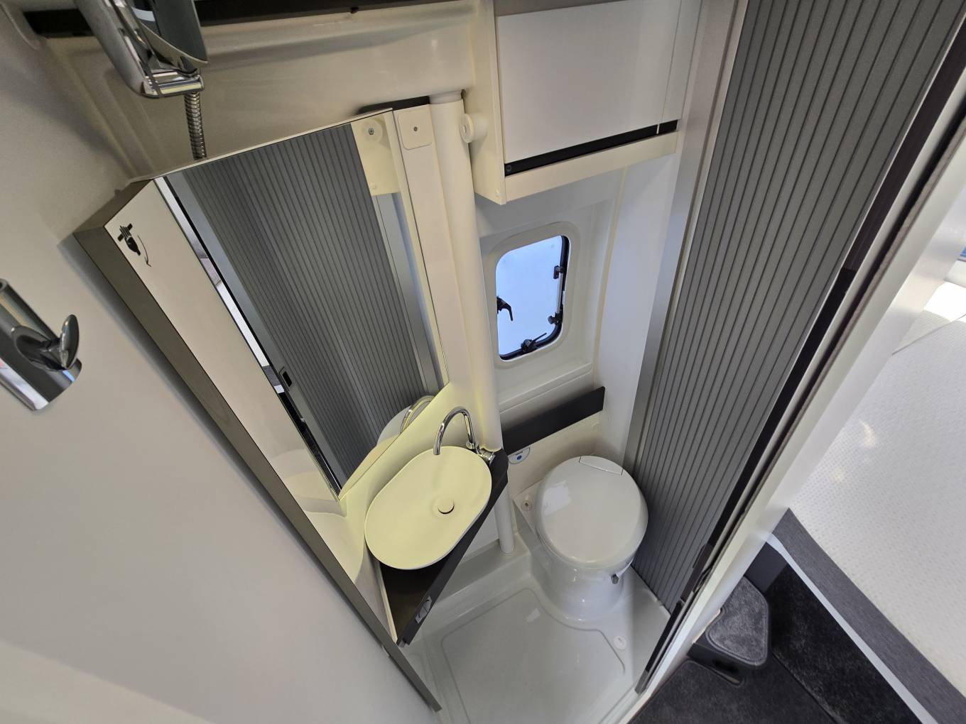 Central of the van is the washroom, housing the cassette toilet, a shower and wash basin.