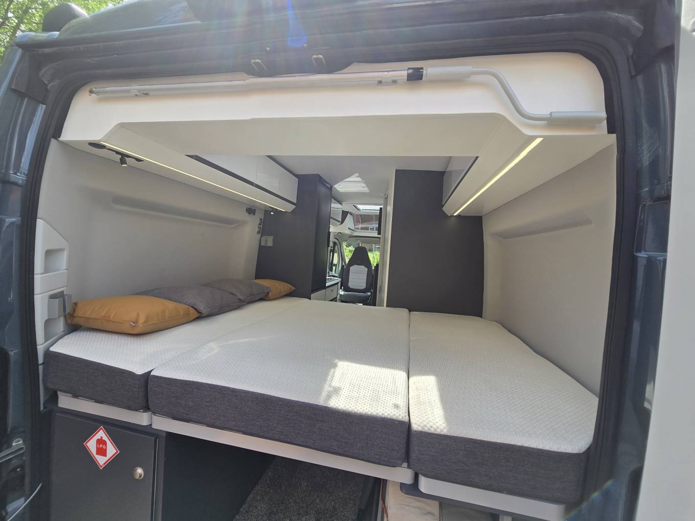 The Adria comes fully equipped with a rear fixed bed and huge amount of storage underneath. It does have the optional 3rd bed that is stored in the garage under the main bed, when not using this, it can be left at home to give a larger garage.
