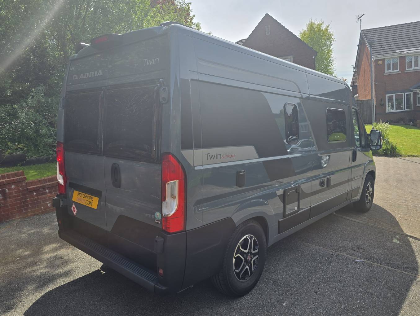 Motorhome Depot proudly presents this 2023 Adria Twin Supreme 600 SPB, that is driven on the desired 9 Speed Automatic Transmission, with low mileage of under 13,000, and extras such as Solar and x2 Leisure Batteries, plus the 3rd bed option. This is in the stunning rare colour Lanzarote Grey which was an optional extra.