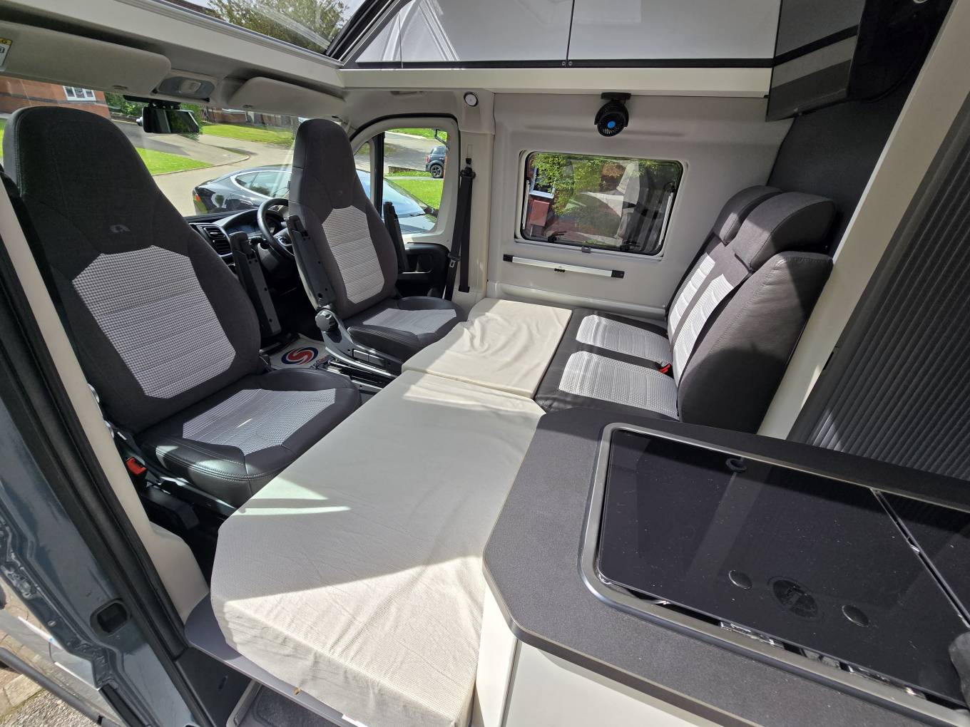 This is 3 berth with 4 travelling seat belts, based on a fiat Ducato 2.2 engine with a 9 speed Automatic transmission. A maximum gross weight of 3500kgs meaning anyone can drive this vehicle with a standard UK driving license. The length of this van is 5.998M