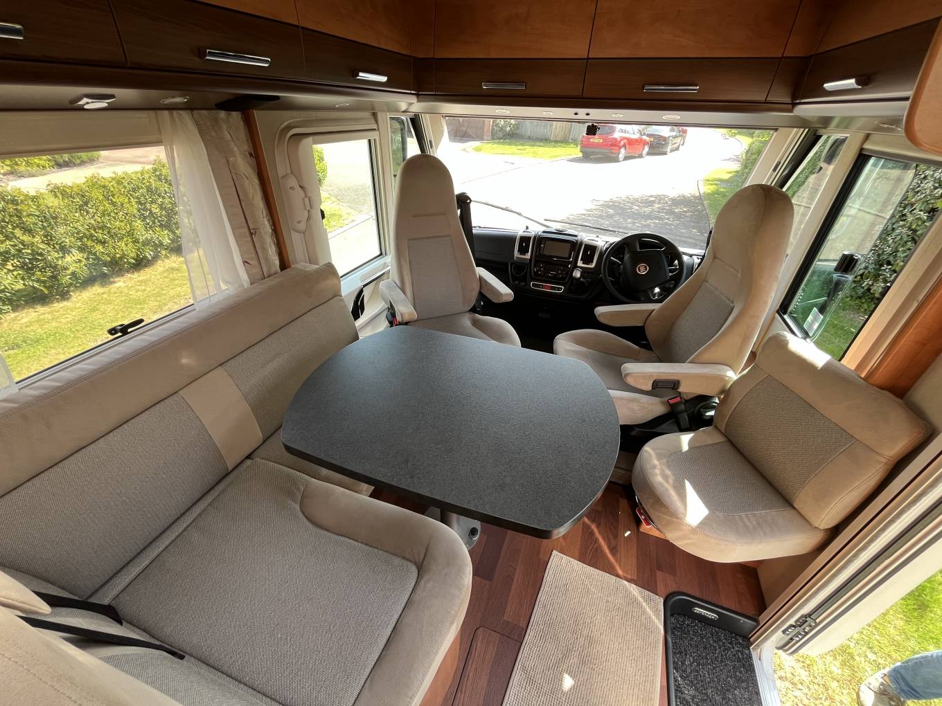 Your journey begins with the fuel-efficient Fiat Ducato engine and automatic gearbox, taking you effortlessly along coastal roads, alpine passes, or countryside lanes at 6.94m long and only 2.12m wide. Inside, the atmosphere is refined and serene, high-quality seating, ambient LED lighting, and premium cabinetry in real wood finish wrap you in understated luxury.