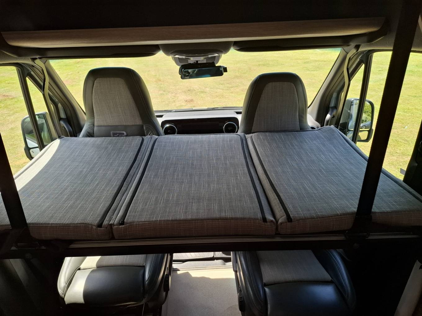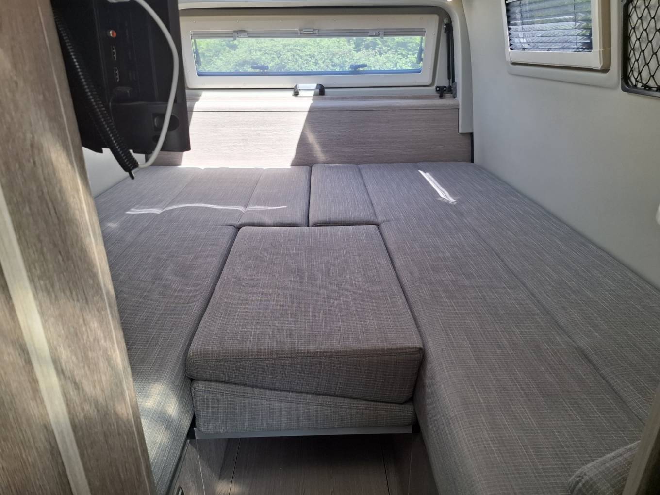 Stowed above the cab is an innovative fold out suspended single berth suitable for a child.