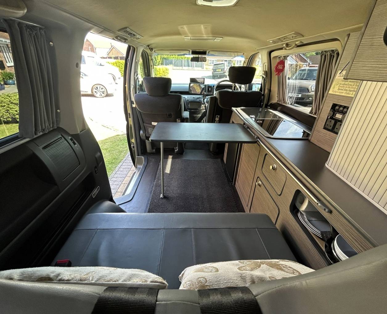 First manufactured in Japan in October 2005 and then imported and registered in the UK in April 2021, the camper comes in black tricolour paint and benefits from having privacy glass and dual electric side doors.