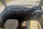 In the cab, the vehicle has a manual 6 speed gearbox, a touchscreen interface which includes bluetooth phone, radio, reversing camera and satellite navigation. There is also air conditioning along with electric windows and mirrors. Externally there is a wind out awning to allow al fresco dining, BBQ Point, Shower point along with external storage lockers including the enormous garage.