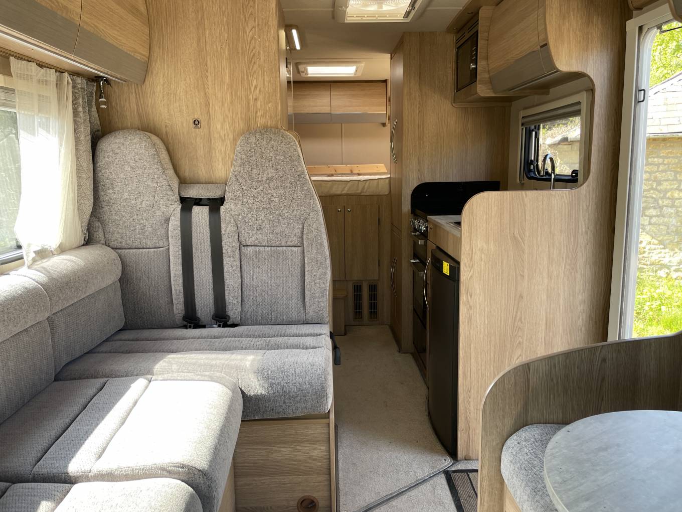 The living space is light and modern, with a fully equipped kitchen, generous washroom with shower, and excellent storage throughout. This motorhome is ready for the road, offering all the features you need for a weekend getaway or extended tour.