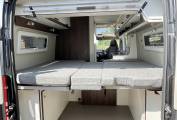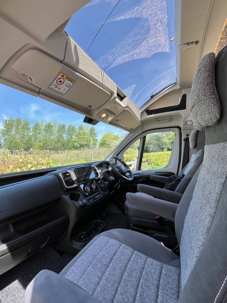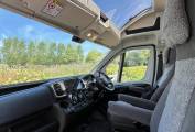 On entering the van you will notice the spacious seating area with plenty of room for 4 people and an adjustable and removable table, this area is flooded with light from the fabulous pop up sky roof, something you would only normally find in a coach built motorhome.