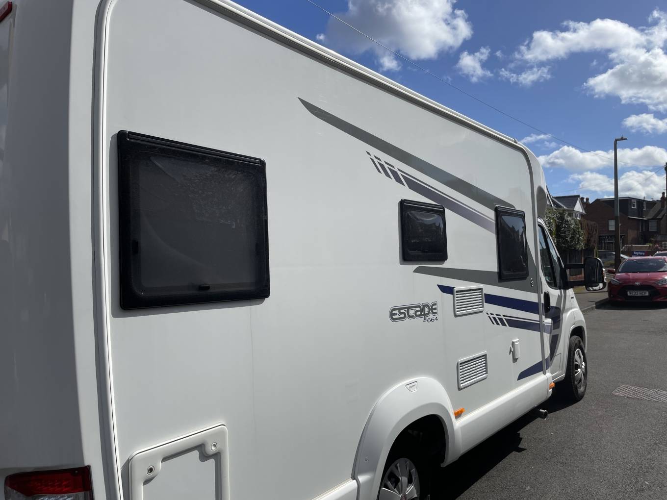 Based in Worcester here we have a 2019 Swift Escape 664 – a superb 4-berth motorhome designed for comfort, freedom, and effortless travel. Running on the Fiat chassis with the 2.3 130bhp engine combined with the Automatic Gearbox it's ideal for families or couples looking to tour in style with four seat belts all within the 3500kg weight limit for standard licence holders. The fixed French bed offers a large and comfortable sleeping space, while the large rear bathroom provides generous facilities including a separate shower and toilet. Inside, you’ll find a fully equipped kitchen with everything you need to cook on the go, alongside a spacious lounge area perfect for relaxing or entertaining that easily converts into a double bed . Additional features include built-in WiFi, solar power for off-grid adventures, and cab air conditioning for those warmer drives. This Escape 664 is the perfect home-from-home, ready to hit the road when you are.