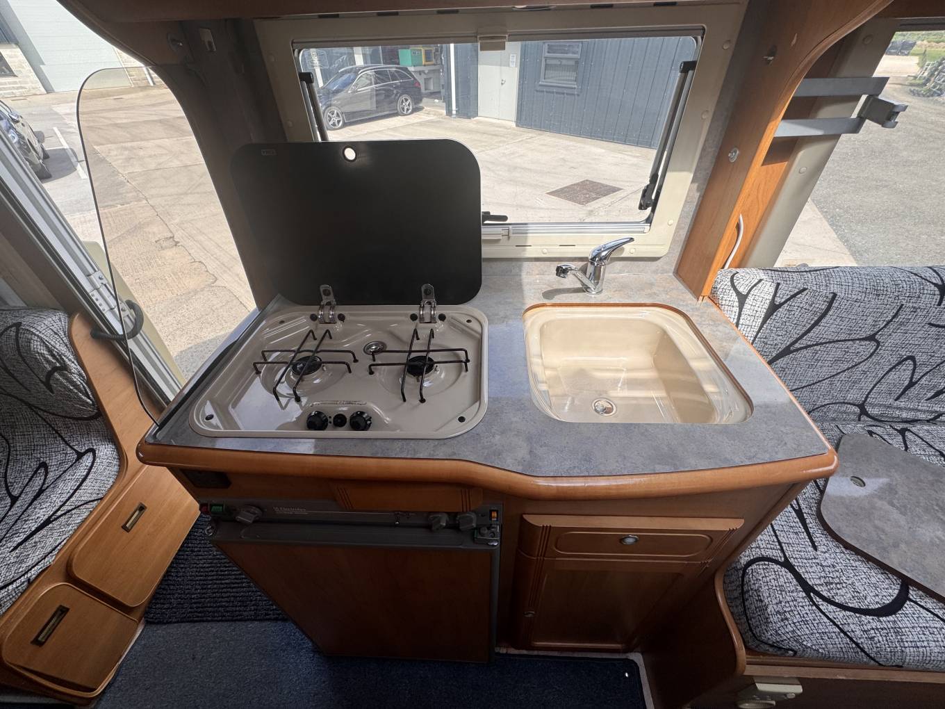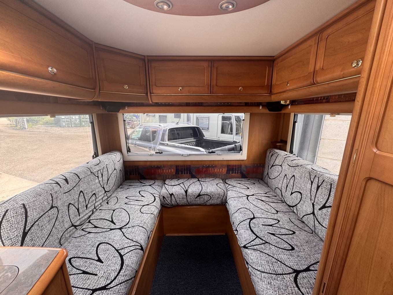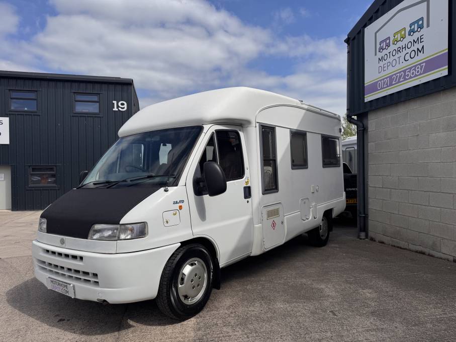 Compact low profile with end lounge. Built in 2001 and fitted with the powerful 2.8 diesel engine, comfortable end lounge layout with good sized dining table, converting to a generous sleeping area. There is a washroom with shower, basin and Thetford cassette toilet, a kitchen with fridge, hob and microwave. 2 further seats towards the front which converts to a single bed. New MOT April 2026. Nice compact vehicle with the advantage of Rapido's high build quality make this an ideal vehicle for couples or small families.