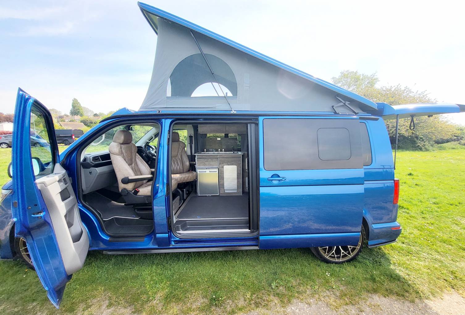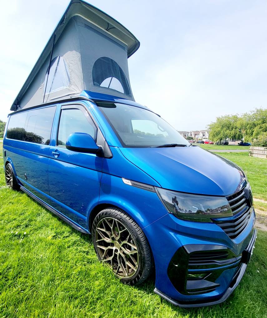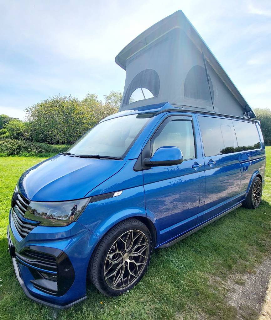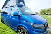 Full VW service history with 1 more paid for service left on the vehicle to give the new owner piece of mind, This very high spec Campervan has been built on the 2022 long wheelbase Volkswagen T6.1 chassis with DSG Automatic box and is finished in the stunning Ravenna Blue Metallic.