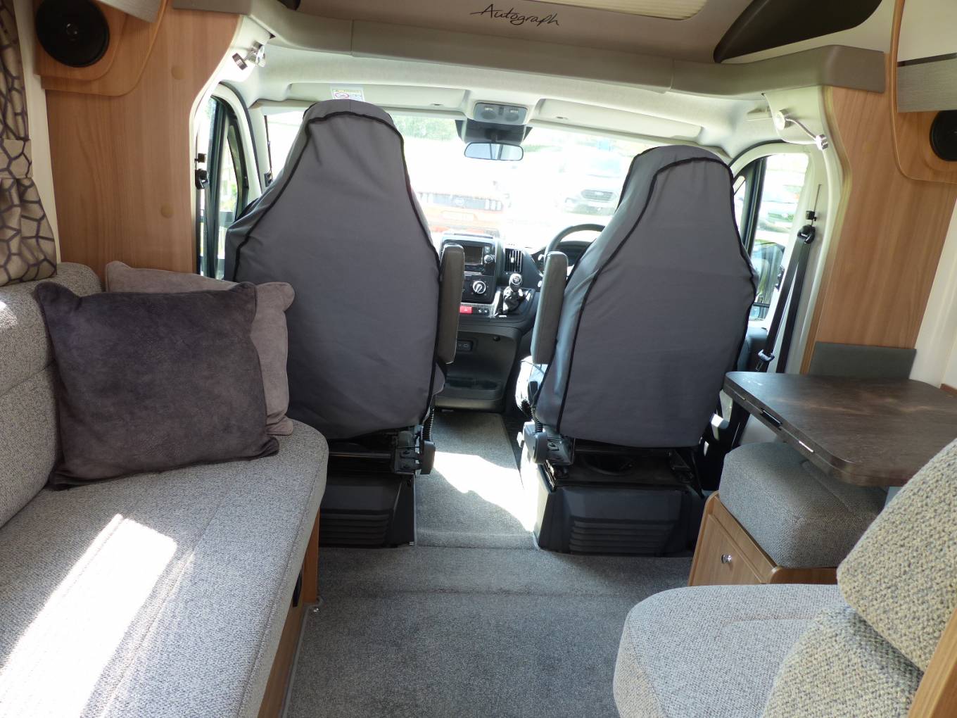 Motorhome Depot are delighted to present this 2020 Bailey Autograph 79-4I motorhome. This motorhome has a very spacious interior layout and consists of front lounge with 4x travel belted seats, a front seating arrangement for upto easily 6 people, under bench and overhead cupboards. The front lounge converts to second double bed option. Cream half leather interior with ample natural light offered.