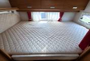 To the rear of the motorhome, you will find the large transverse bed, accessible via a Luton ladder.