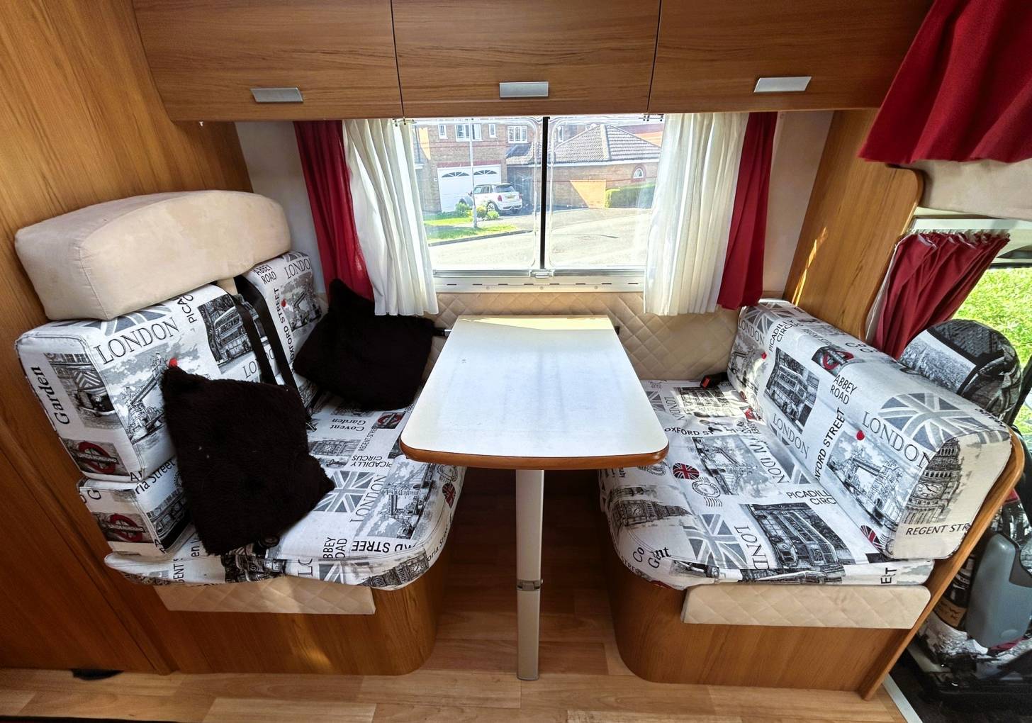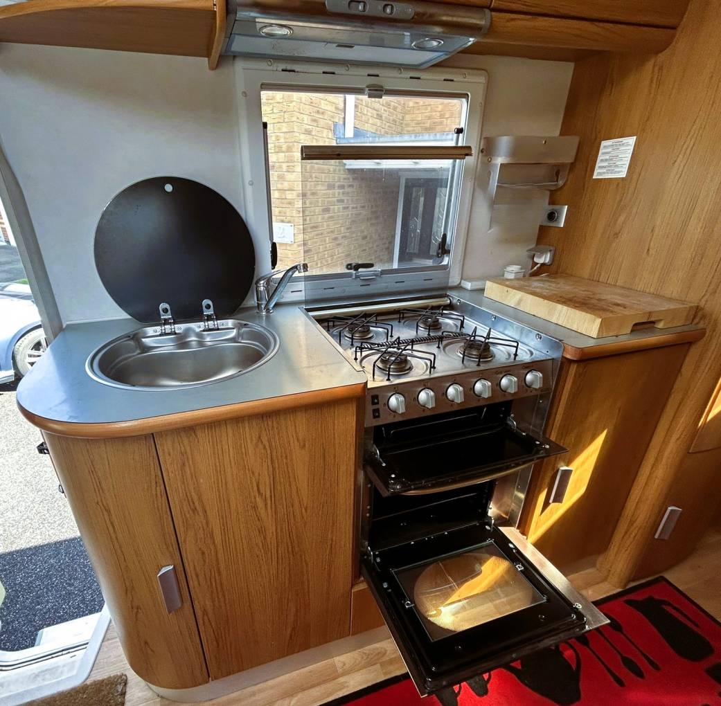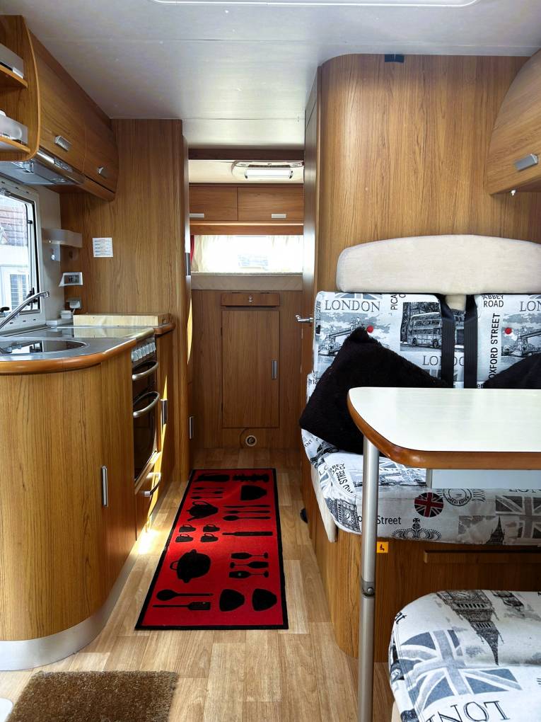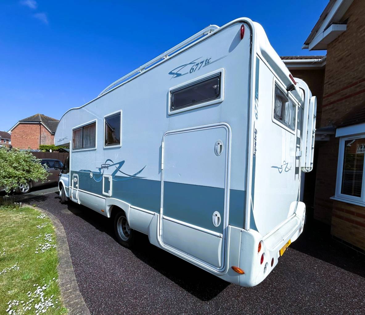 The motorhome is based on the ever-popular Ford chassis with 2400cc engine, 6-speed manual gear box and has just under 46k miles on the clock. It comes with an MOT which is valid until April 2026 with no advisories. The GVW is 3500kg which means it can be driven on a standard UK driving license. The vehicle has been taken out of the country by the owners for a period of time, but it has been re-registered in the UK.