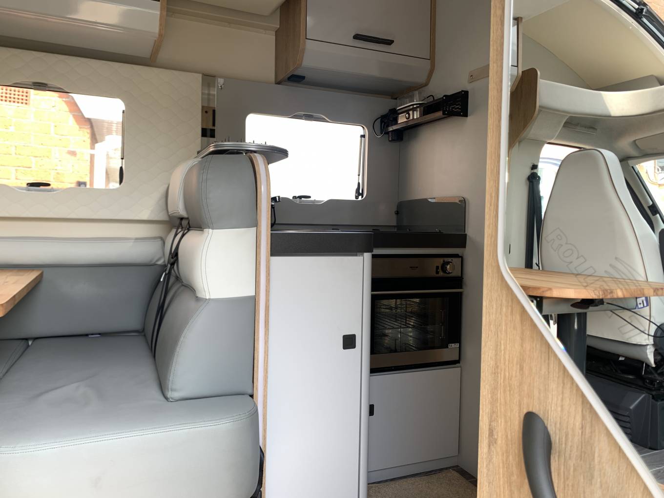 The T-Line 740 from Roller Team built to a high standard with luxury specification, a popular choice offering space for 2 or 4 travellers it benefits from a large dual access garage providing storage for extended stays and space to carry electric bikes.Built on a Fiat Ducato with 6 speed manual gear box, 150bhp and Air-ride Suspension.