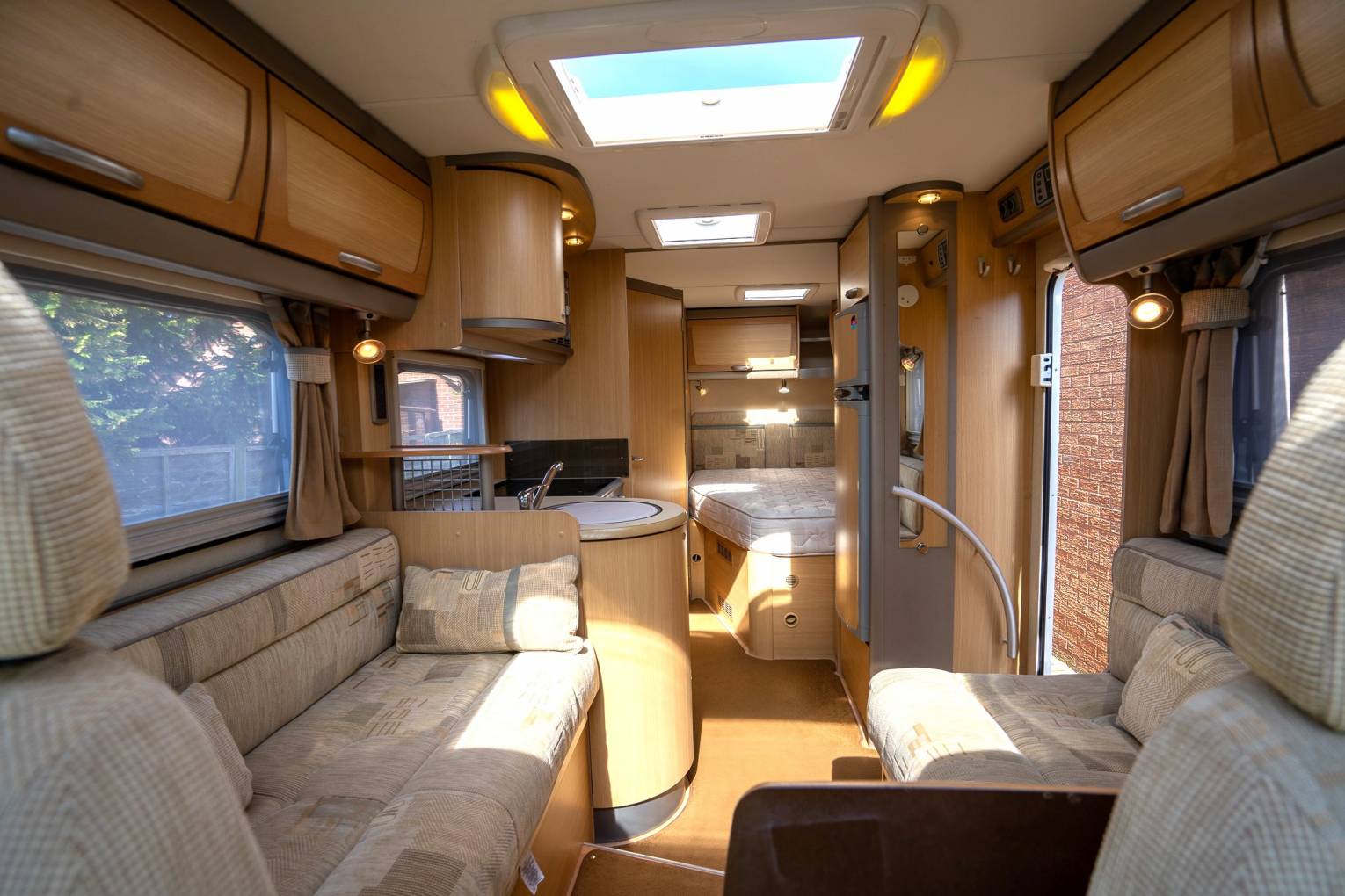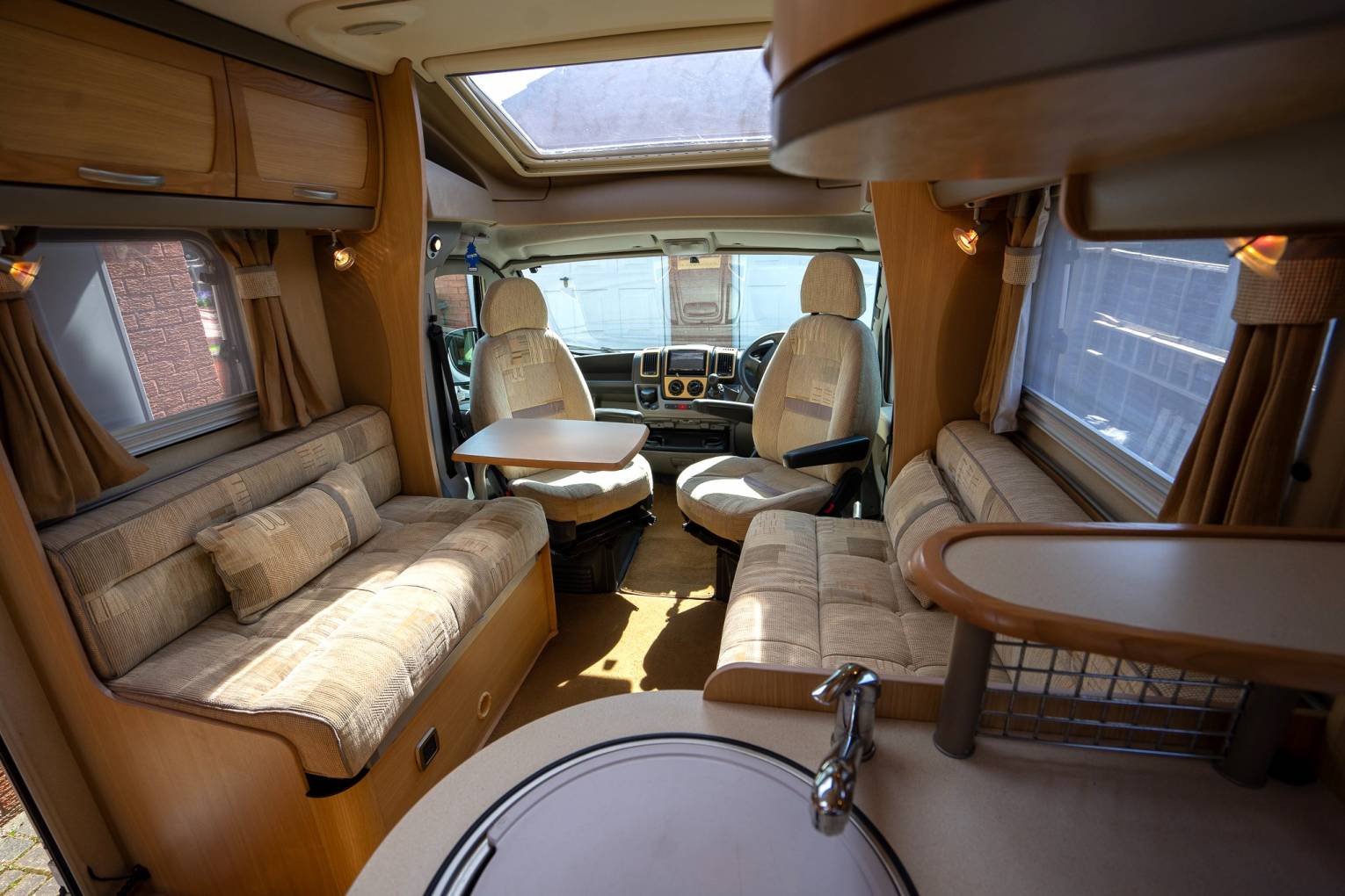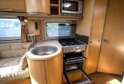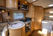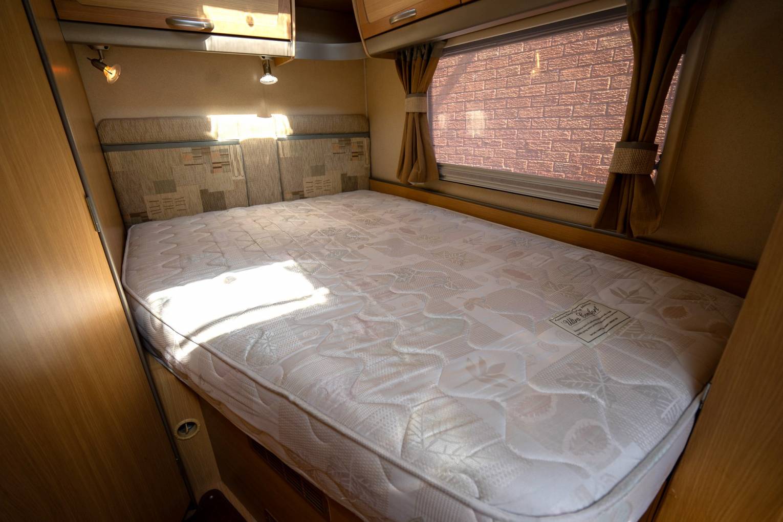 As you enter there is a spacious front lounge area consisting of a two opposing settees with removable side table and large separate foldaway dining table. The swivel captain’s seats mean the lounge area can seat 6 adults comfortably. The Sofa's convert into a 2nd Double bed.