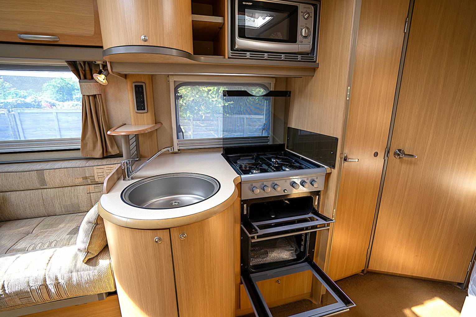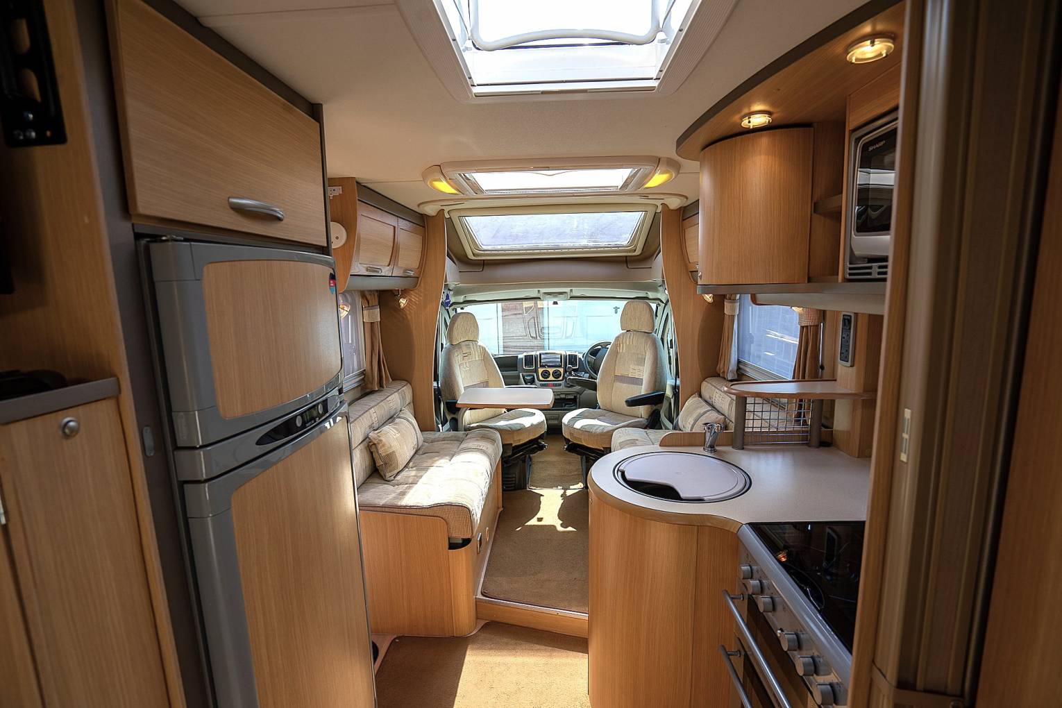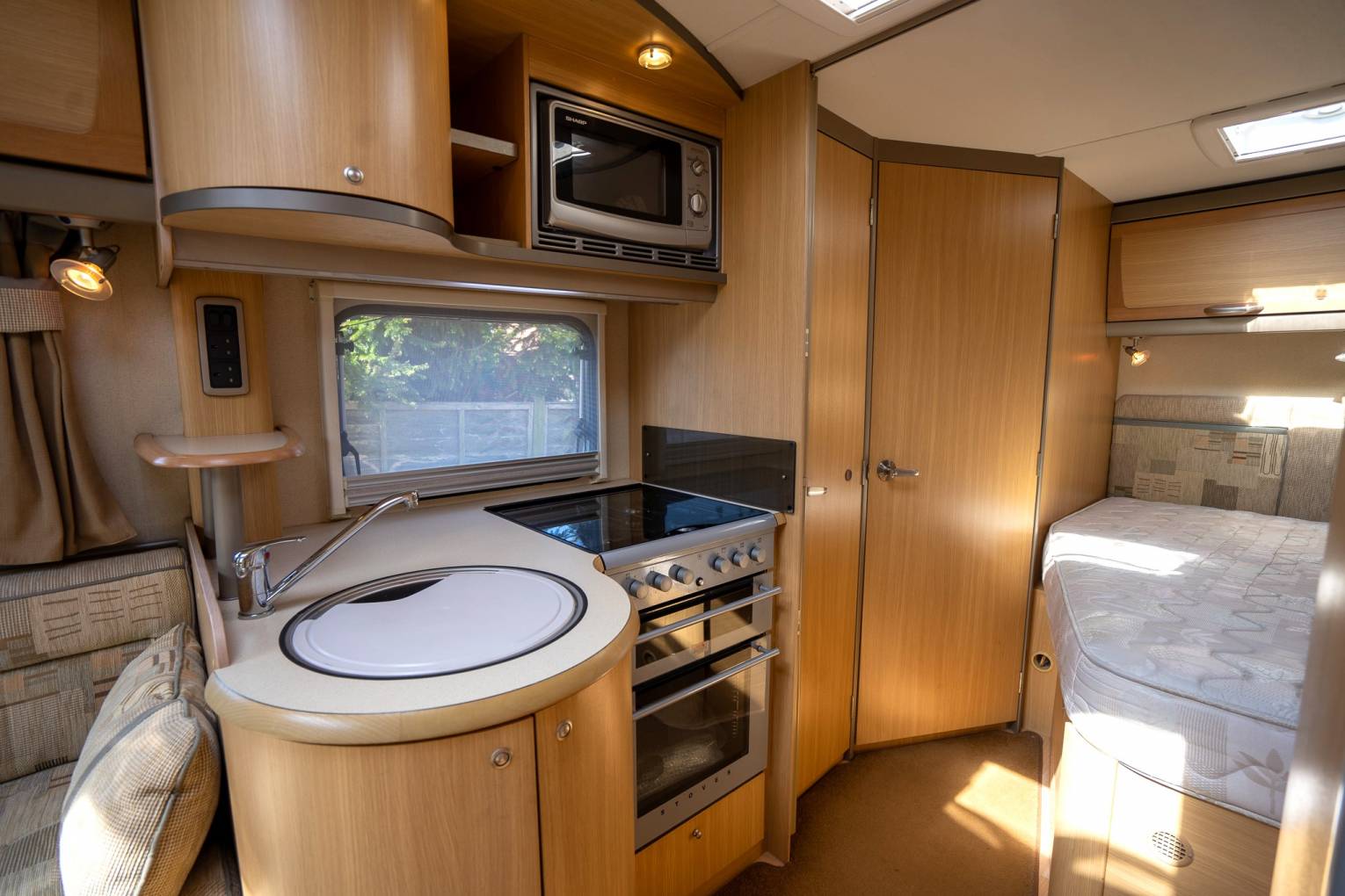 As you enter there is a spacious front lounge area consisting of a two opposing settees with removable side table and large separate foldaway dining table. The swivel captain’s seats mean the lounge area can seat 6 adults comfortably. The Sofa's convert into a 2nd Double bed.