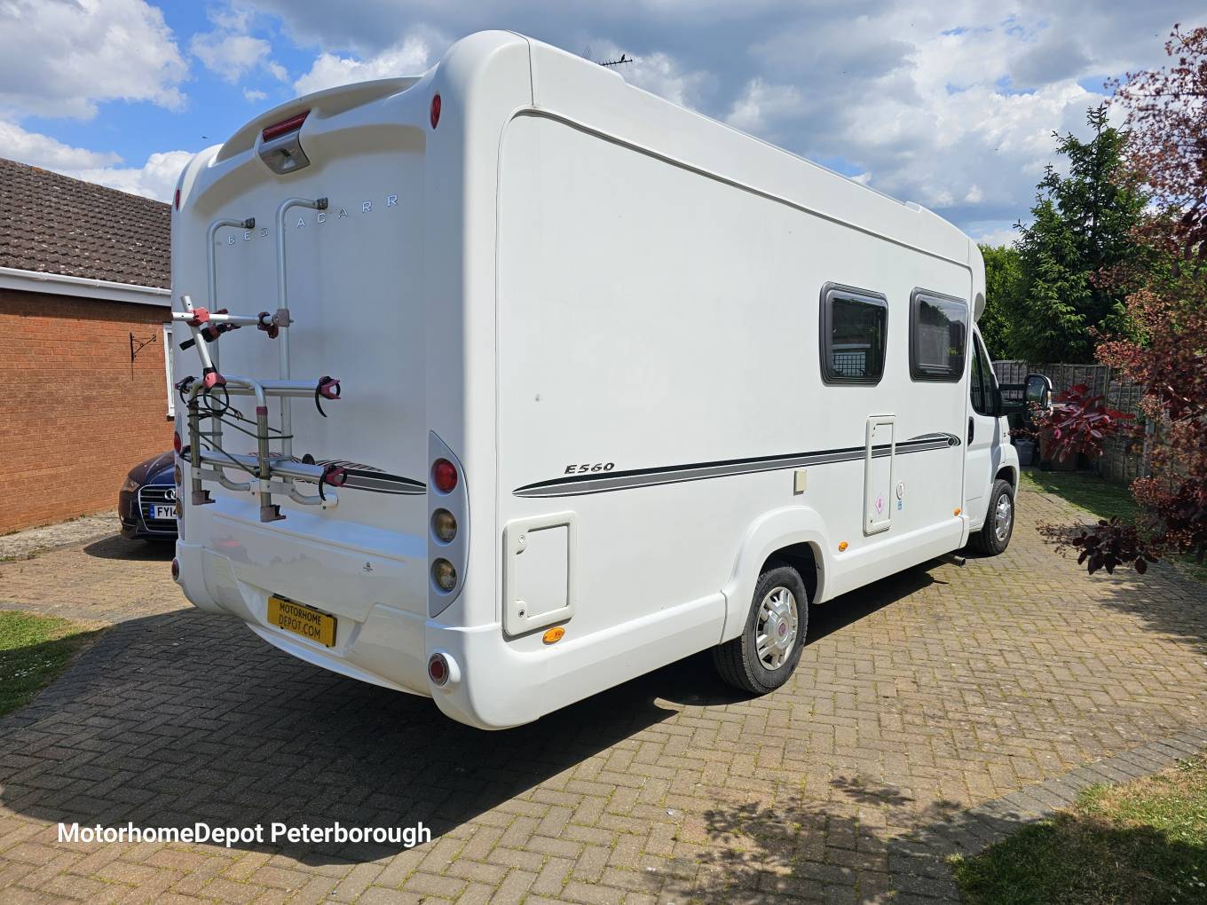 Hugely popular 2008 Bessacarr E560 Low Profile 4 Berth motorhome with rear fixed bed. Based on Fiat Ducato 2.3 130 BHP Diesel 6 speed manual with Al-ko Chassis. This motorhome has a spacious and sort after layout consisting of a fixed rear bed, comfortable front lounge area, central Kitchen and end washroom. 2 Travelling seat belts.