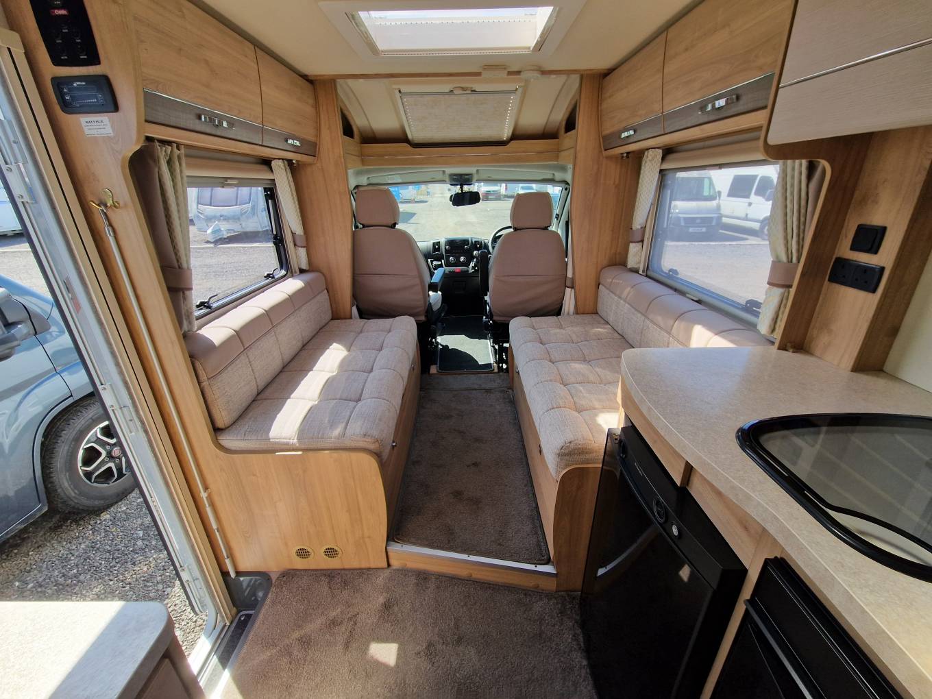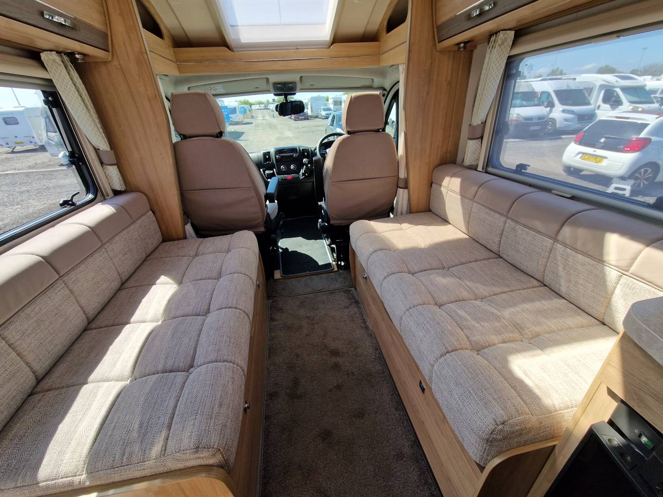 The 105 is a pure two-berth and the social area has inward-facing sofas in the lounge that make into a double bed or you can keep them as two single beds (up to 6’ 6” long) if you prefer by using the swivel cab seats.