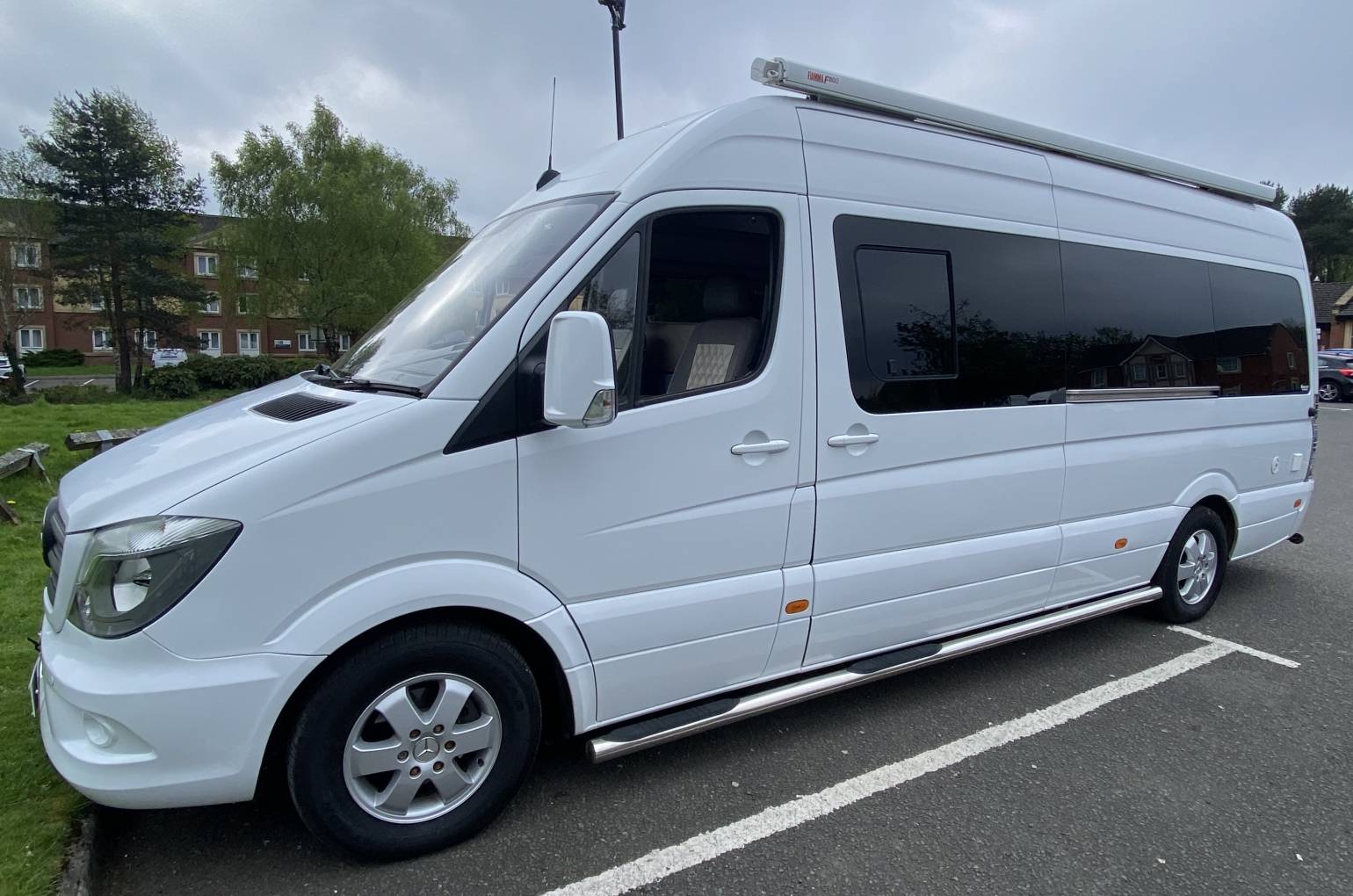 Now, look at this beauty! Motorhome Depot Falkirk are delighted to have on board this very attractive Mercedes Benz 2.2 Sprinter in White with exceptionally low mileage for its age! This vehicle was first registered 30/12/2016, has an MOT until May 2026. Recently Hab Check Feb 2025 along with Mercedes Servicing. This vehicle sports a fresh modern look of grey and white with white leather affect seating. It has the split dining and sitting/sleeping areas with a full bathroom and galley kitchen. The exterior of this vehicle is in excellent condition with original Mercedes Alloys. Its on a long wheel base, can be driven on an basic licence as maximum payload is 3.5 ton. ULEZ Compliant.