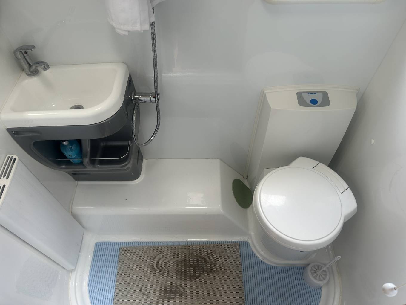 Moving to the rear of the motorhome you have a wonderful Island Bed that runs transverse across the back of the van. This gives you a much more spacious feel that the traditional Island bed and creates a lovely bedroom area including TV in the corner. The bed will also lift up to give further storage underneath. A further double can be made up using the front sofas. The 730 comes with a good sized washroom that includes a Thetford flush cassette toilet, sink and shower. Heating and hot water is provided by the excellent Alde heating system.
