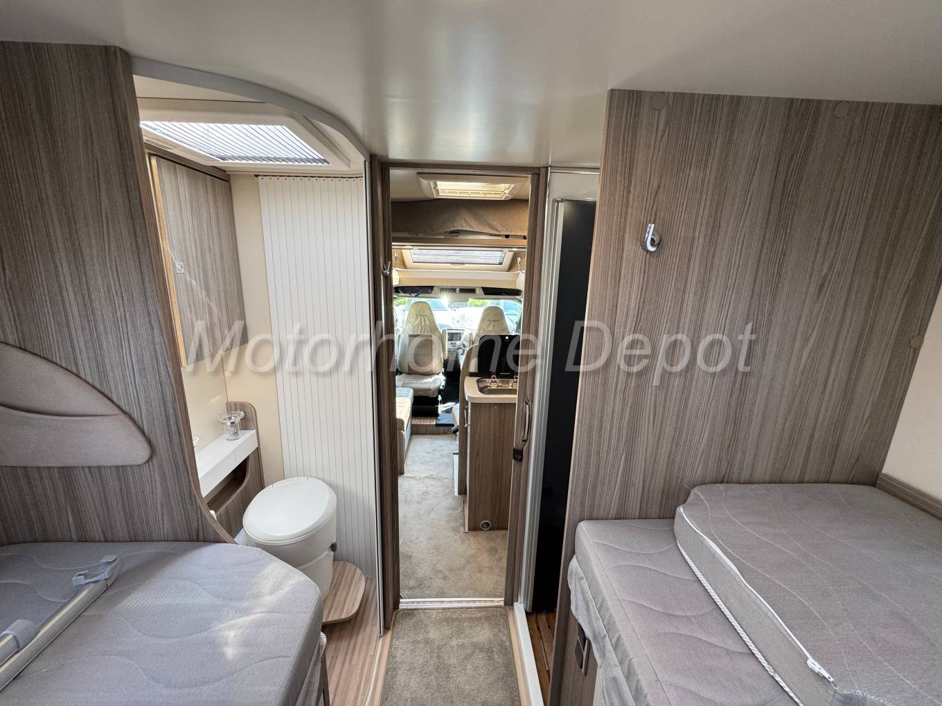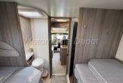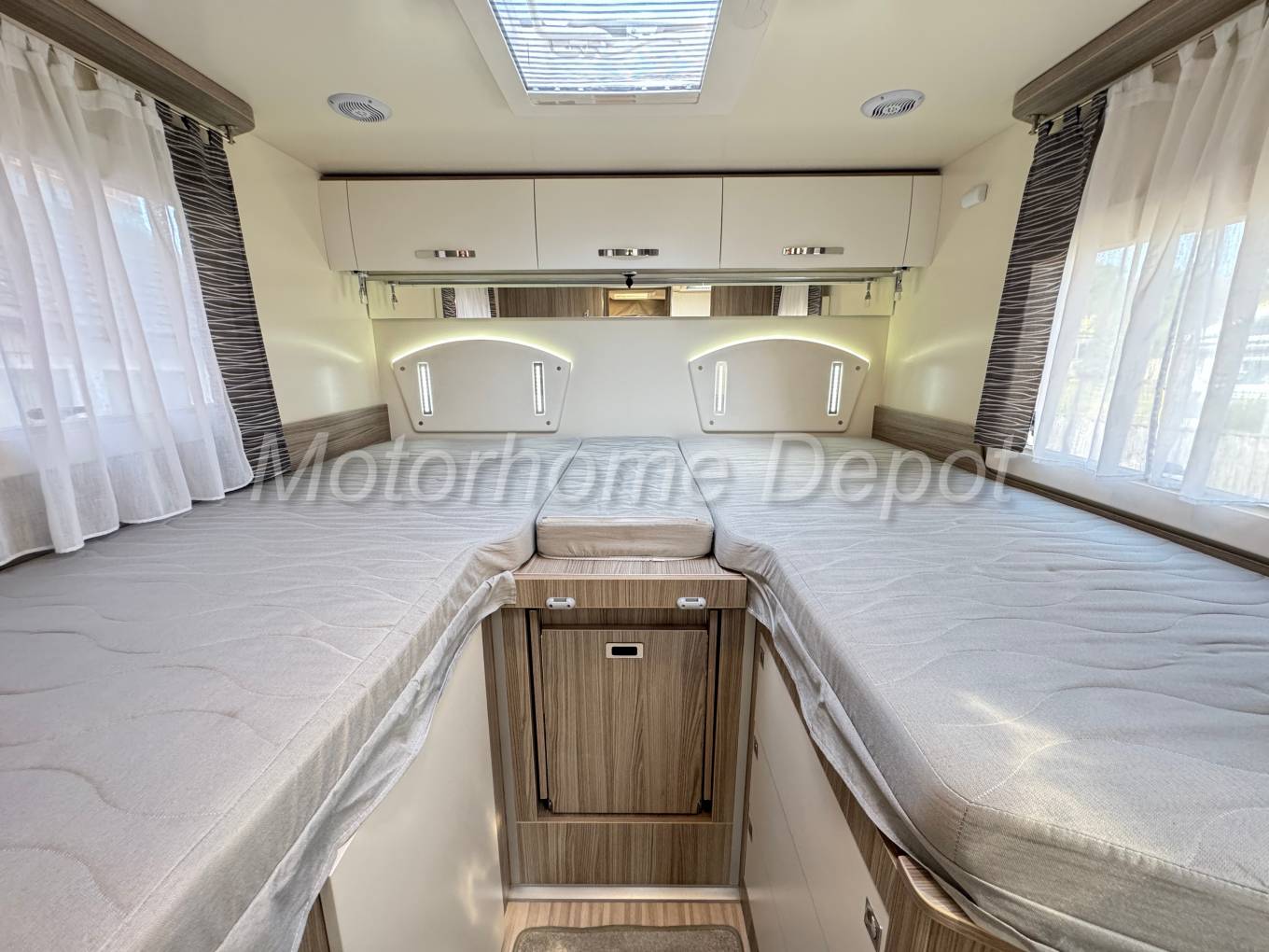 Unique to the 463 is the twin single beds layout at the rear, offering added comfort and convenience, especially for those who prefer individual sleeping arrangements. Each bed has its own headboard, reading lights, and storage, with steps in between for easy access. Alternatively the area can be made up into a large double bed using an infill cushion and the accessed via a small ladder.