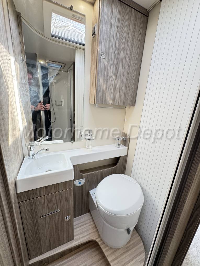 The bathroom is neatly located midship & split over both sides of the Motorhome.