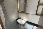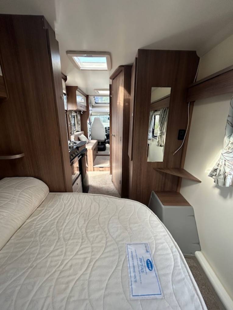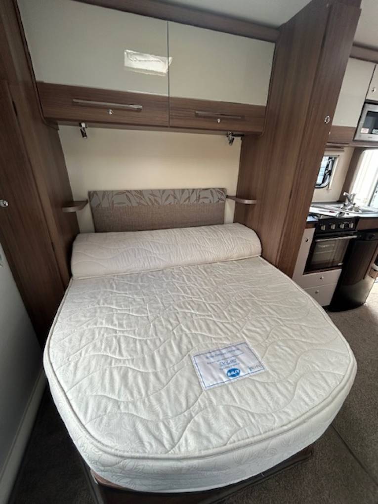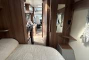 The spacious end bedroom includes a double transverse bed that lifts up to provide further storage space underneath. This storage area can also be accessed from the exterior of the vehicle. The front lounge can also be converted into a double bed.