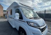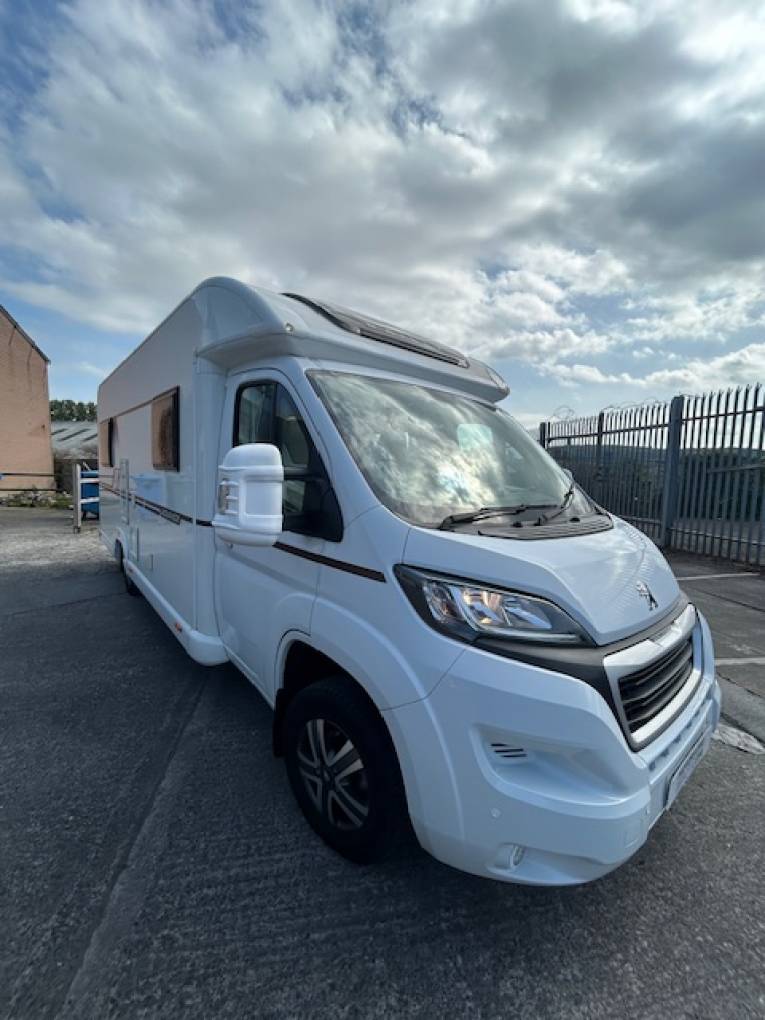 2019 Bailey Advance 74-4 for sale. The specifications are: length 7.39m, width 2.48m, height 2.79m with a weight of 3500kg meaning C1 is not required. Based on a 2.0L Peugeot Boxer chassis.