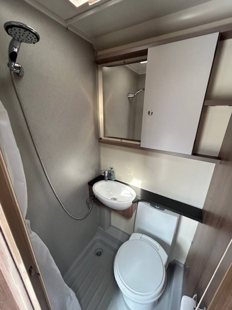 More features of this motorhome includes an external BBQ point, two gas bottles, cab air conditioning, levelling ramps, hook up cables, wind out canopy, immobilizer and a ghost tracker.