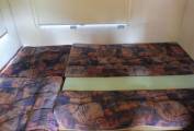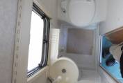 The washroom is situated behind the cab area with vanity sink unit, cassette toilet and shower over. There is a nifty fold-out wall which provides a space for changing after your shower. Opposite the washroom is a wardrobe. Throughout the van there are loads of storage options.