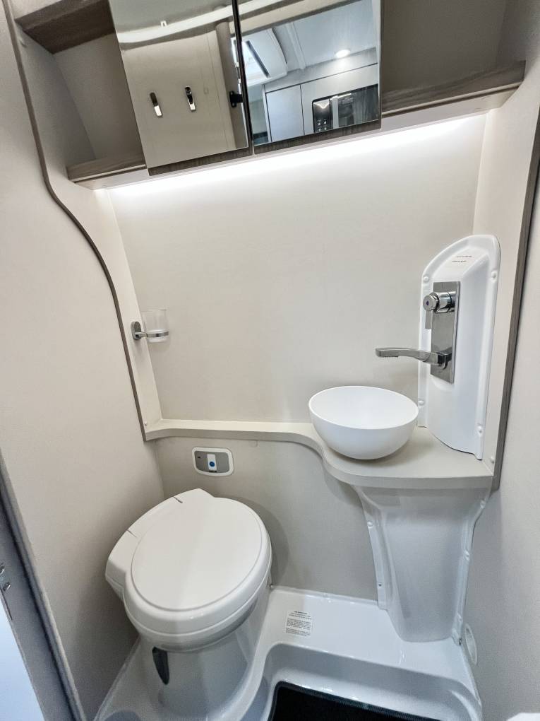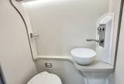 The well equipped kitchen comprises of Microwave, 3 burner hob, combination oven and grill, sink with hot & cold water, fridge, pop up worktop extension and plenty of storage. Opposite the kitchen you have the washroom/shower area, complete with electric flush toilet, hand basin and mixer tap / shower head, storage cupboard and mirror.
