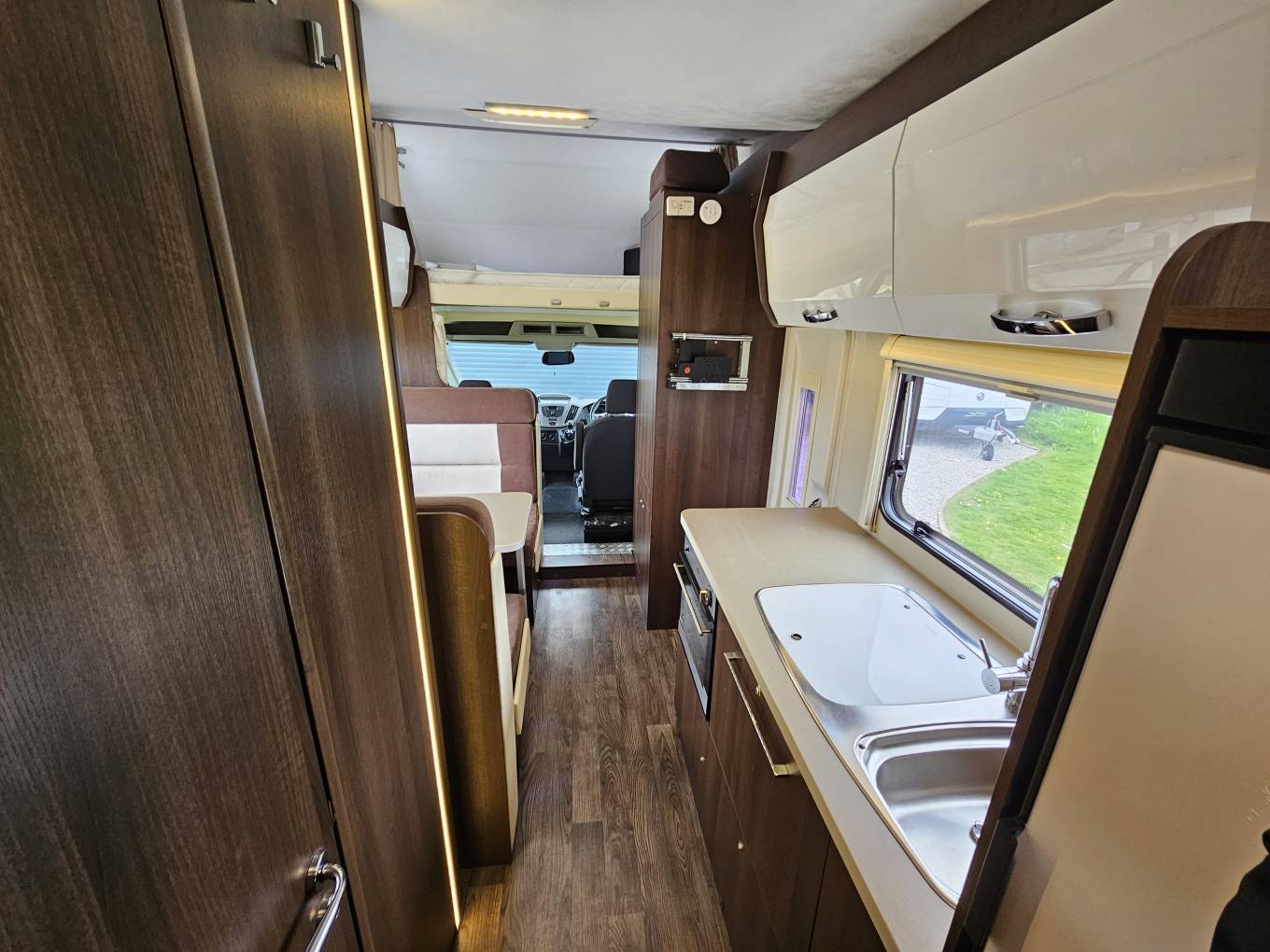 Built on a Ford Transit chassis, this 2.2L diesel engine delivers 170bhp through a 6 speed manual gearbox. This Zefiro 690 measures approximately 7.3 meters in length with a maximum weight of 3500kg, meaning it can be driven on a standard car license and covered 36,000 miles.