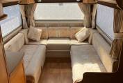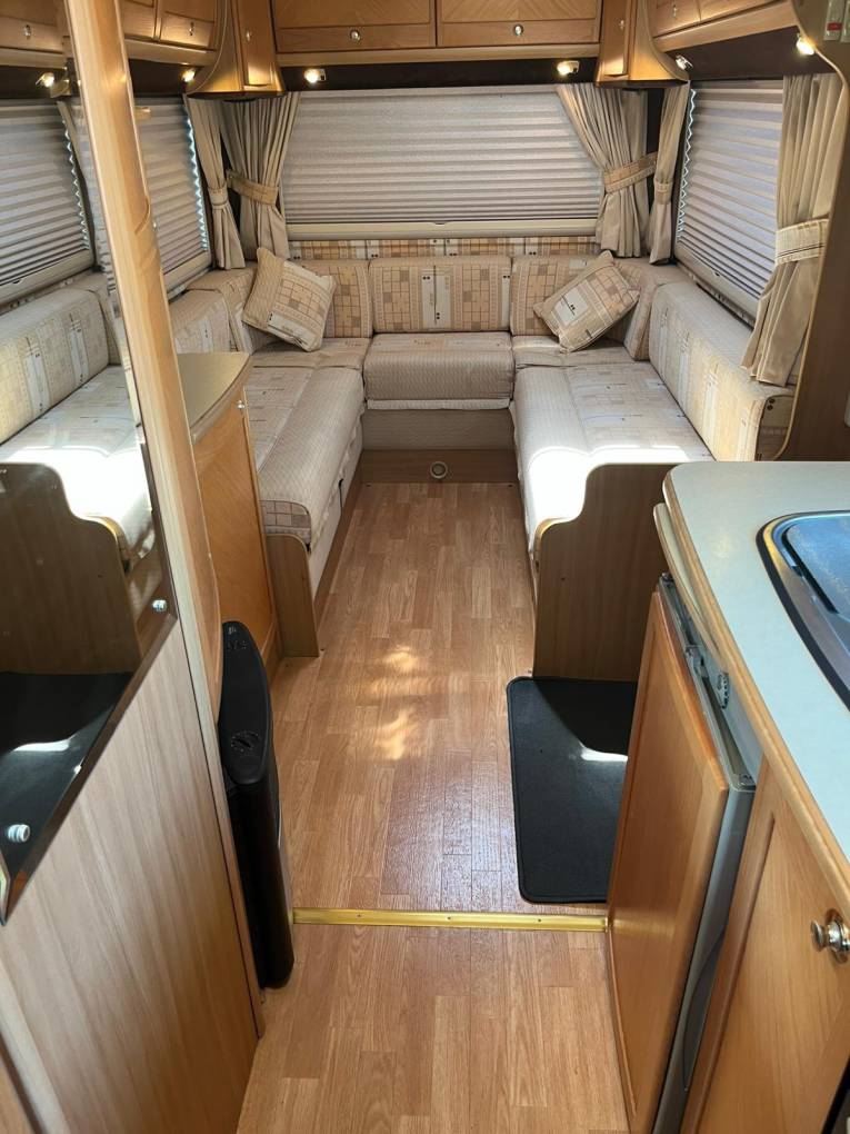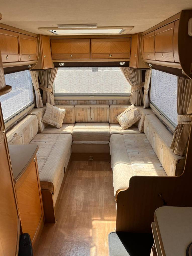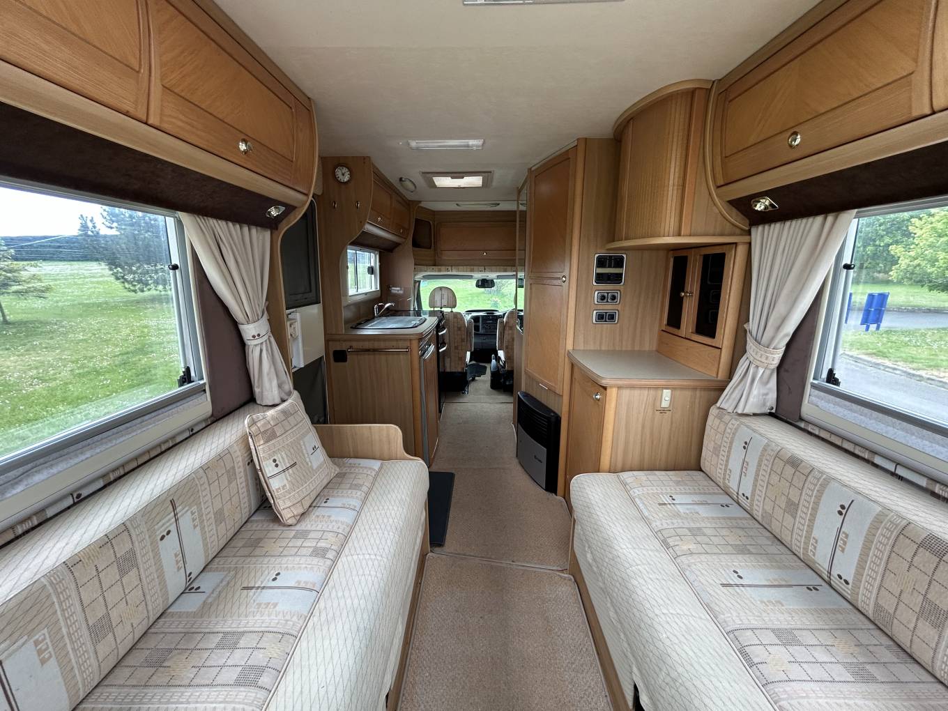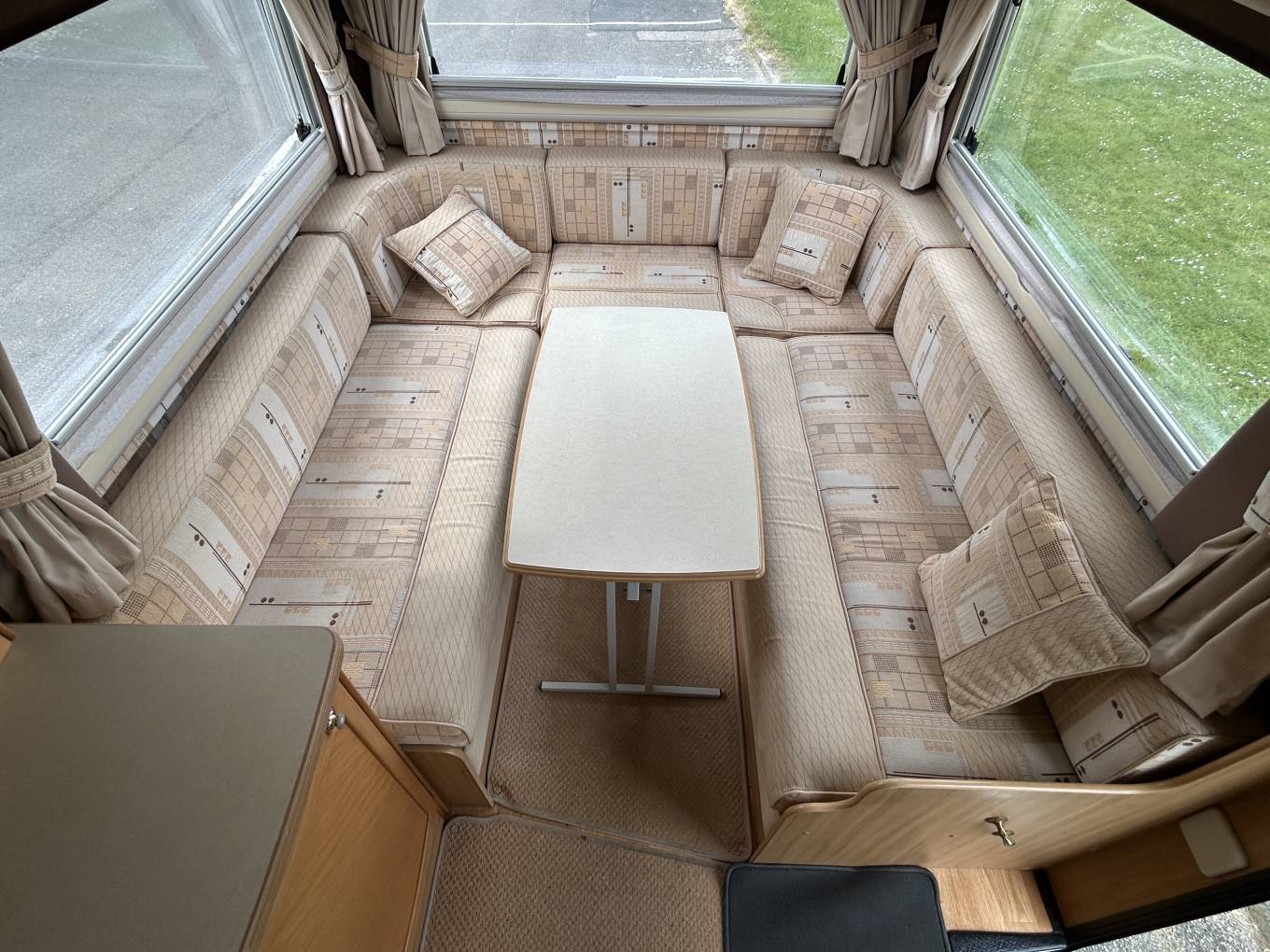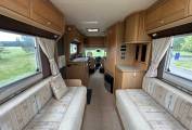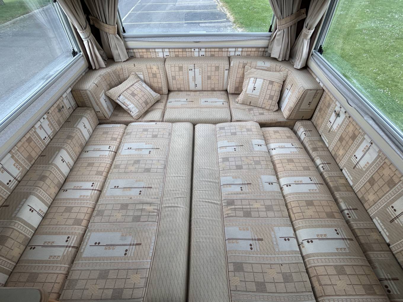 Step inside and you will be hugely impressed with the spacious layout. Without a doubt the most striking feature is the huge rear U shaped lounge. The sofas are long enough to be used as single beds which are 78 inches long or alternatively pull the sofas together and you have a king-size bed that measures 78 x 78 inches. After a day out what can be nicer than kicking off your shoes, stretching out on the sofas with a glass or two taking in the views through the triple aspect windows. In one of the lockers there is a TV / DVD on a slide out bracket so you can keep up-to-date with all of your favourite shows.