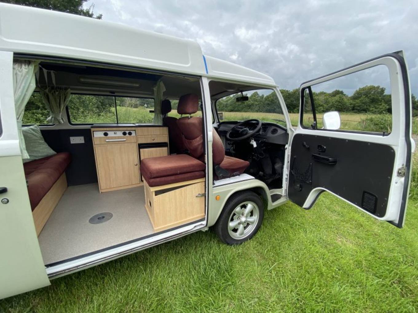 DANBURY VW T2 DIAMOND CONVERSION with 5 travelling seats, 4 berth with rock n roll bed plus sleeping for 2 in the pop top above. 1400cc petrol, blown air heating, electric hook up, fridge and awning. Power steering, lovely camper throughout. Sensible offers considered.