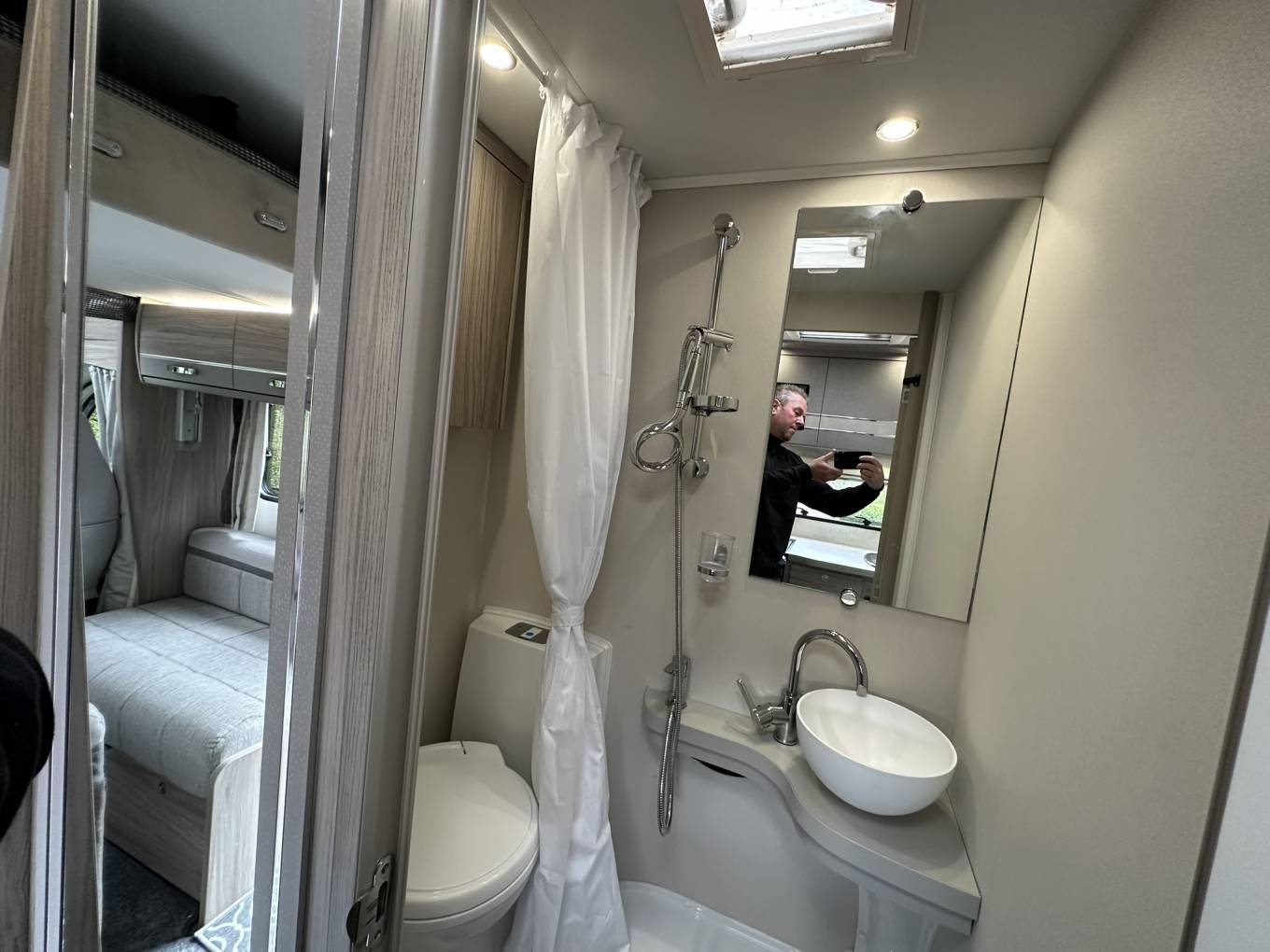 Stay fresh and comfortable wherever you travel with the fully equipped washroom:
