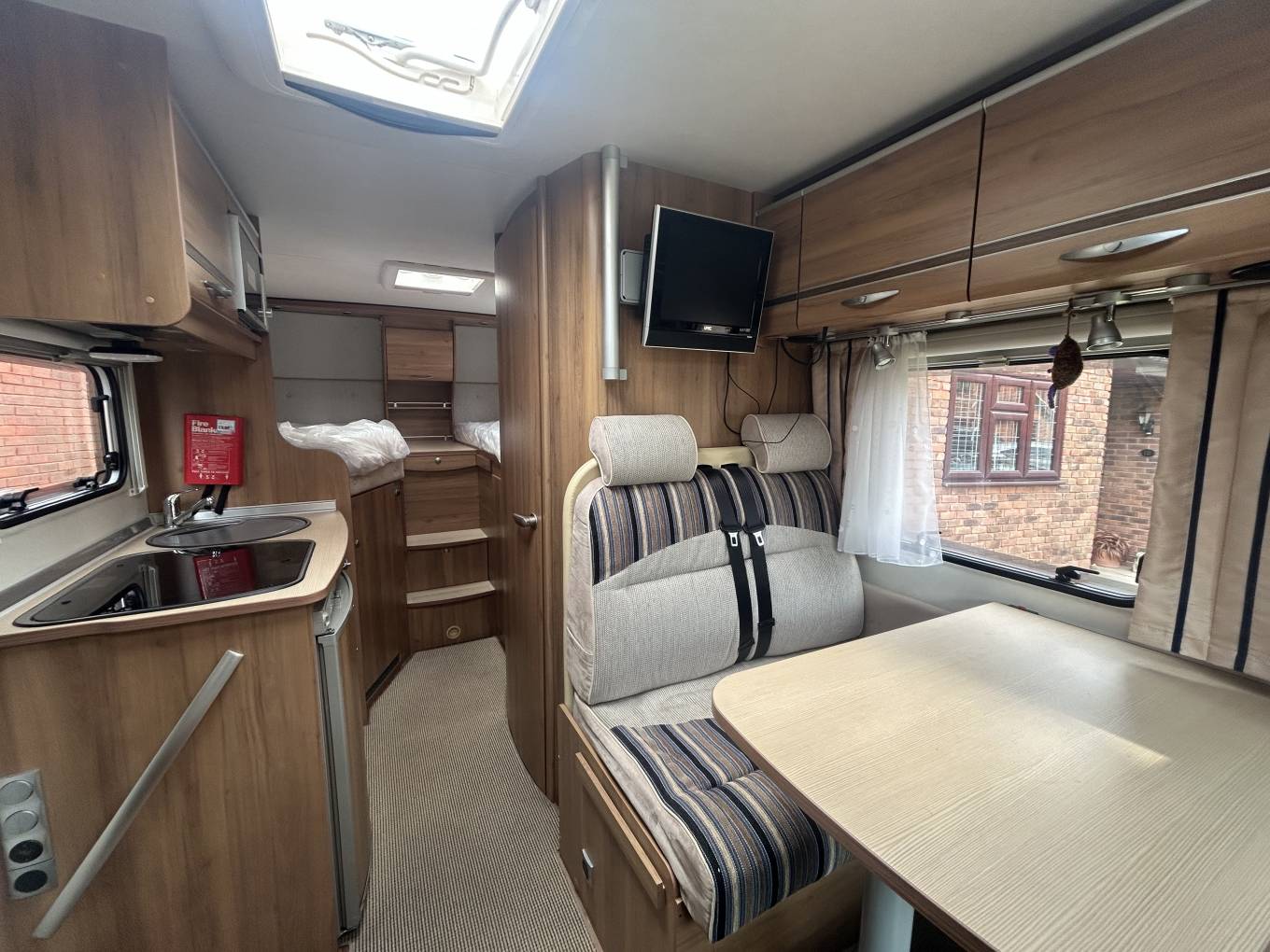 The 620g Travel Van is built on the ever popular Fiat Ducato chassis and has a 2.3l engine with 6 speed manual gearbox and 130 bhp. The motorhome has been fitted with the Click and Go Gear Changing system but this has never been used by the current owners. It does come with cab air conditioning, cruise control and reversing camera.