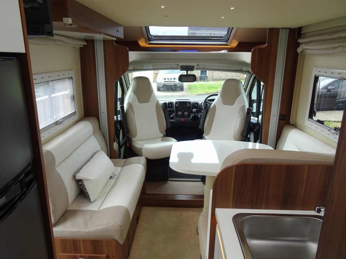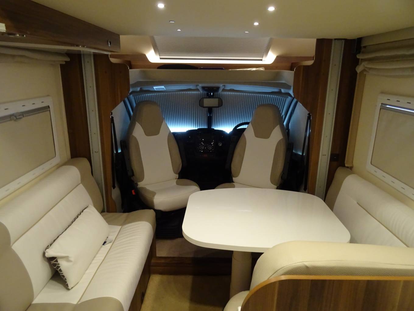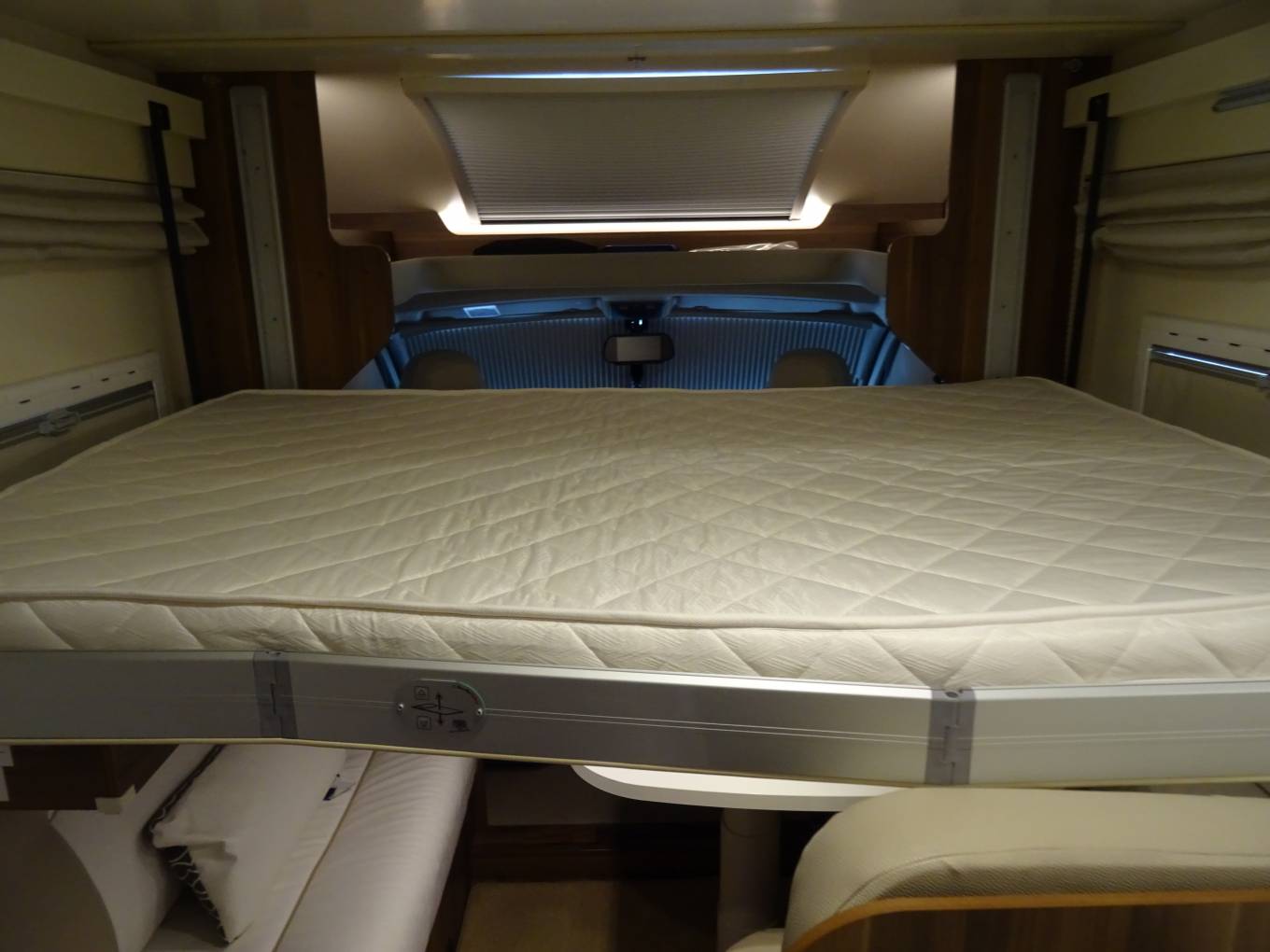 The outstanding feature of this lovely motorhome is the fully motorised drop-down bed that is stored in the roof of the living area. This large bed is very simple to operate and the smooth mechanism allows you to bring the bed down at the touch of a button, ready for an extremely comfortable nights sleep. In the morning it can once again be raised out of the way, to restore a stylish living space to enjoy the day in.