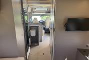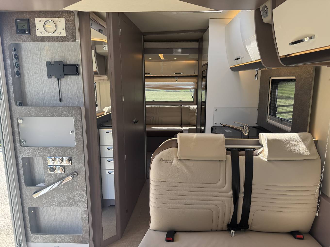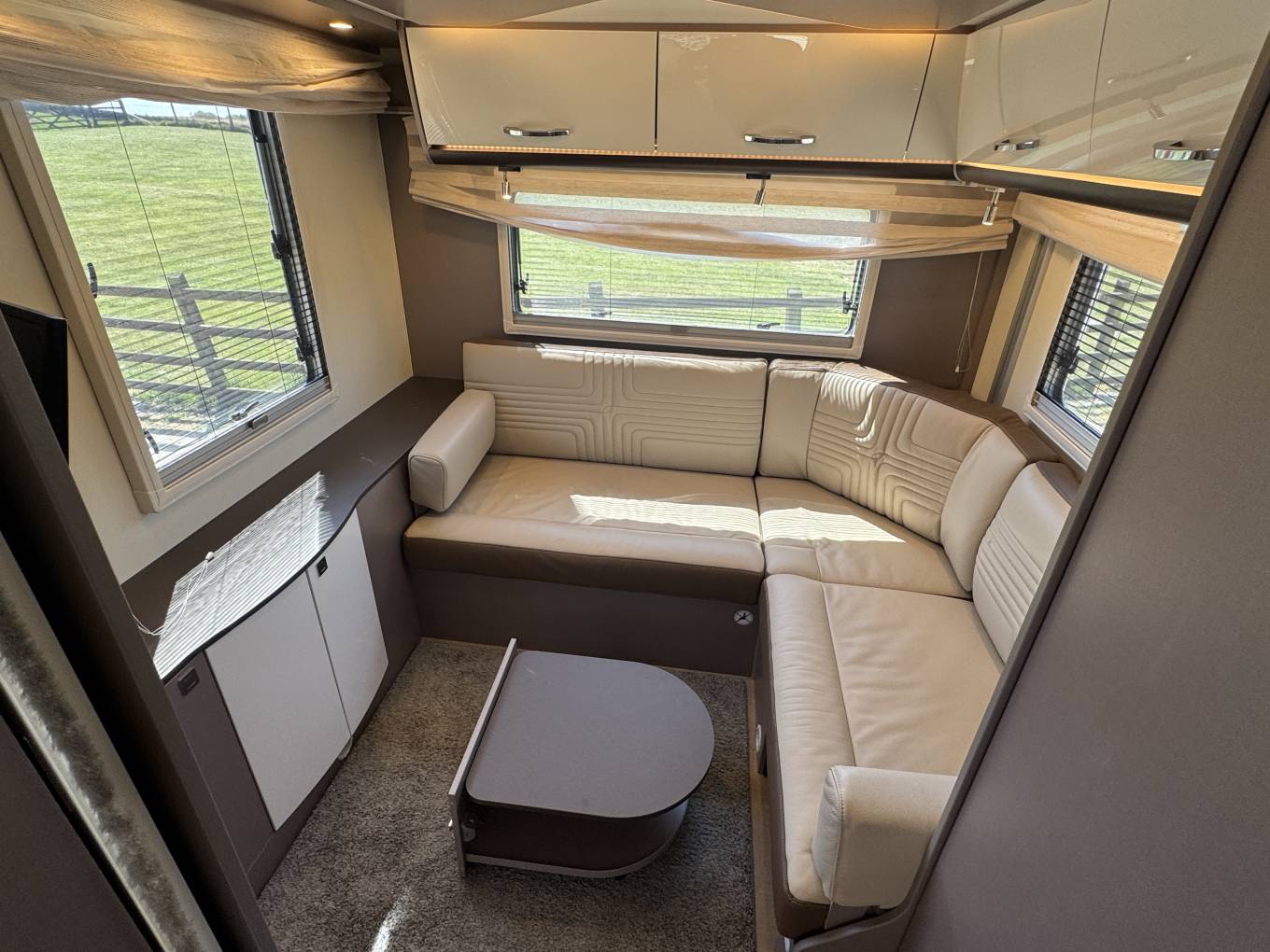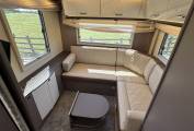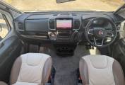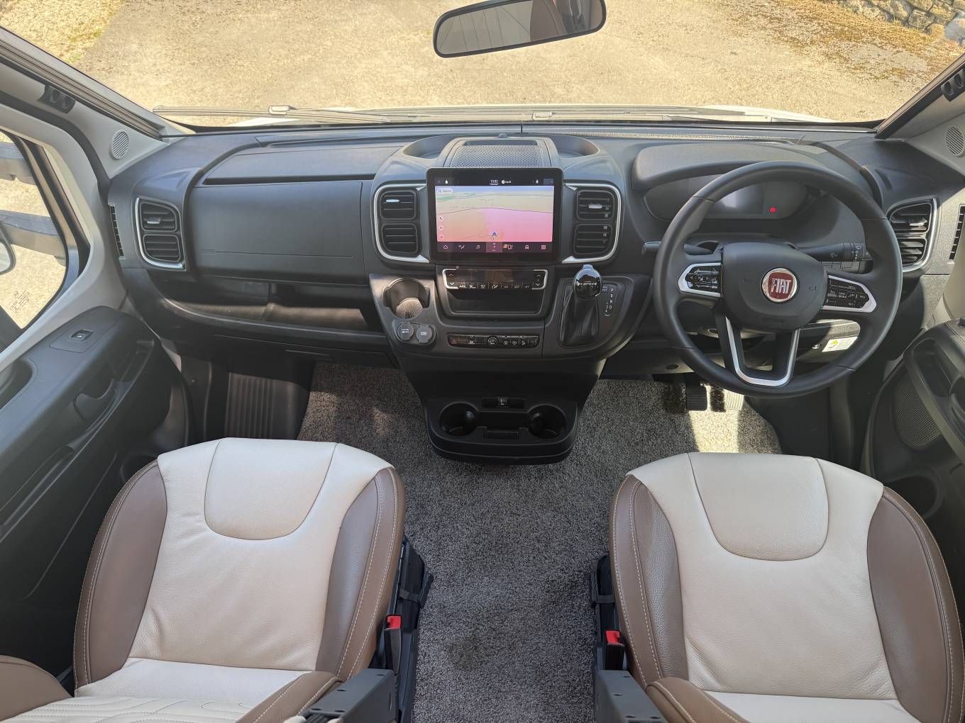 In in the cab, the vehicle has a automatic gearbox, a Pioneer touchscreen interface which includes bluetooth phone, radio, reversing camera and satellite navigation. There are also air conditioning, electric windows and mirrors. Externally there is a wind out awning to allow al fresco dining, a tow bar along with external storage lockers including the good sized garage.
