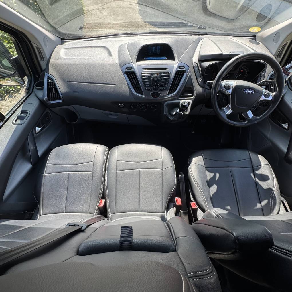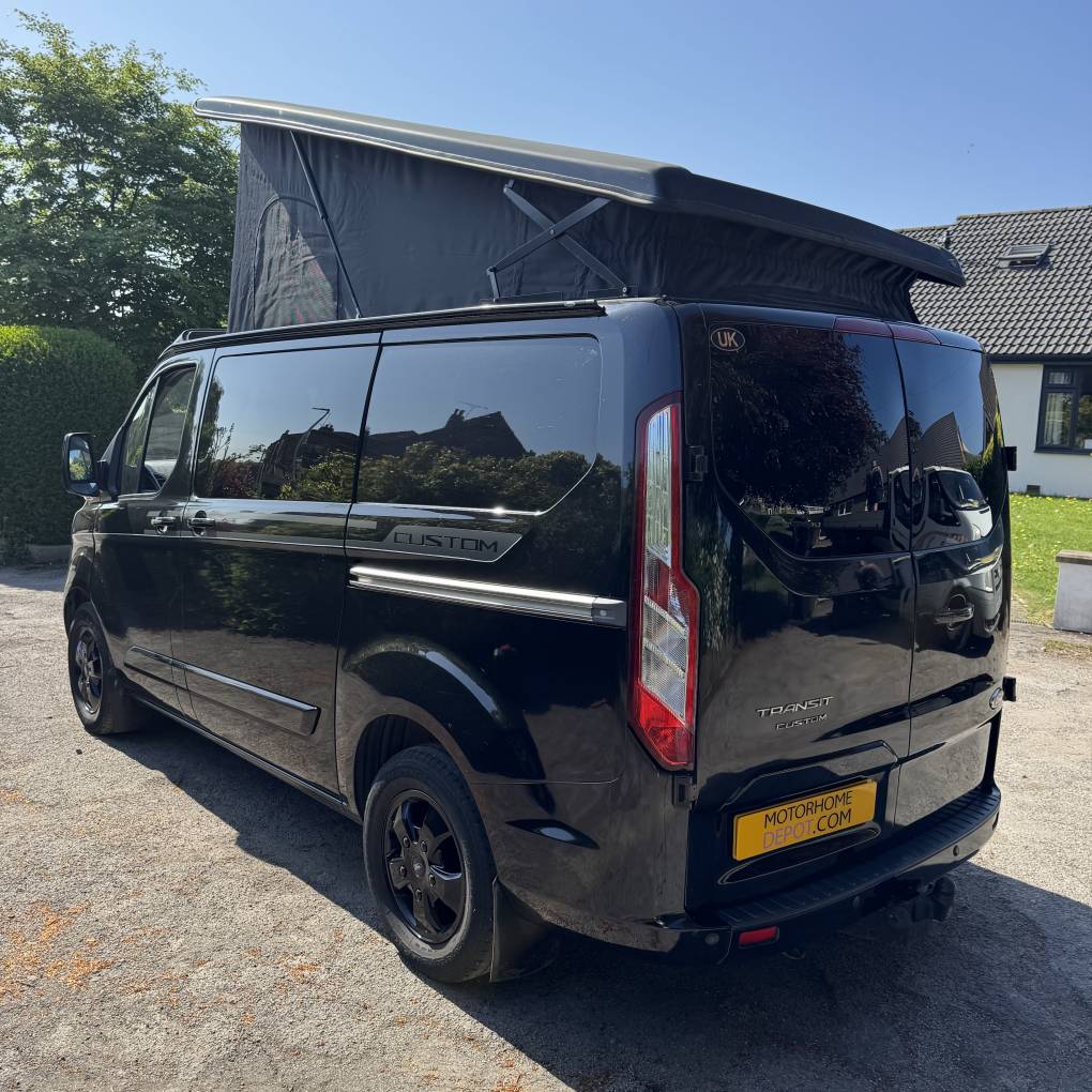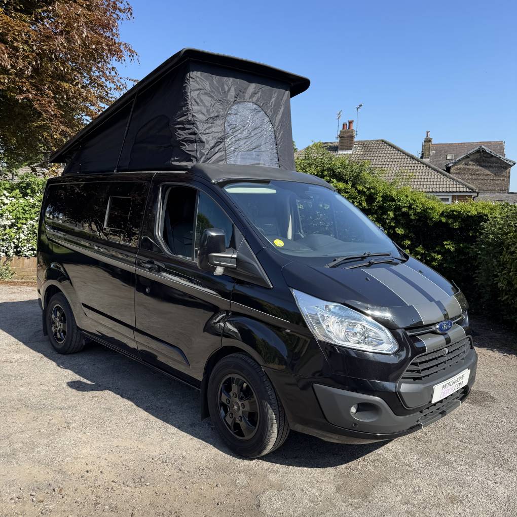 Welcome to the sale of this Ford Transit Custom Camper. This versatile camper comes with sun canopy and free standing driveaway air awning. TV, fridge, two ring cooker, sink, gas bottle in locker, pull out bed with rear seat belts fitted, diesel night heater, thermal blinds for night time and windscreen blackout cover etc. LED interior lighting, Leisure Battery fitted and 230v Hook-Up. Air Con, Cruise Control, Speed Limiter & DAB Radio. Heated seats, Bluetooth, Ford Sync, Folding Mirrors, cornering lights, Courtesy Lighting and front and rear parking sensors. Passenger seats rotate for dining, playing games etc and has foldaway table. Comes with towbar fitted for bike rack/trailer etc. Will sleep four people and all certification included including pop top receipt.