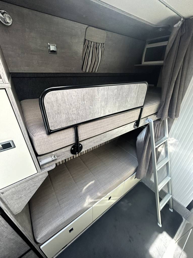 Facing the kitchen, you will find the bunk beds providing sleeping for two.