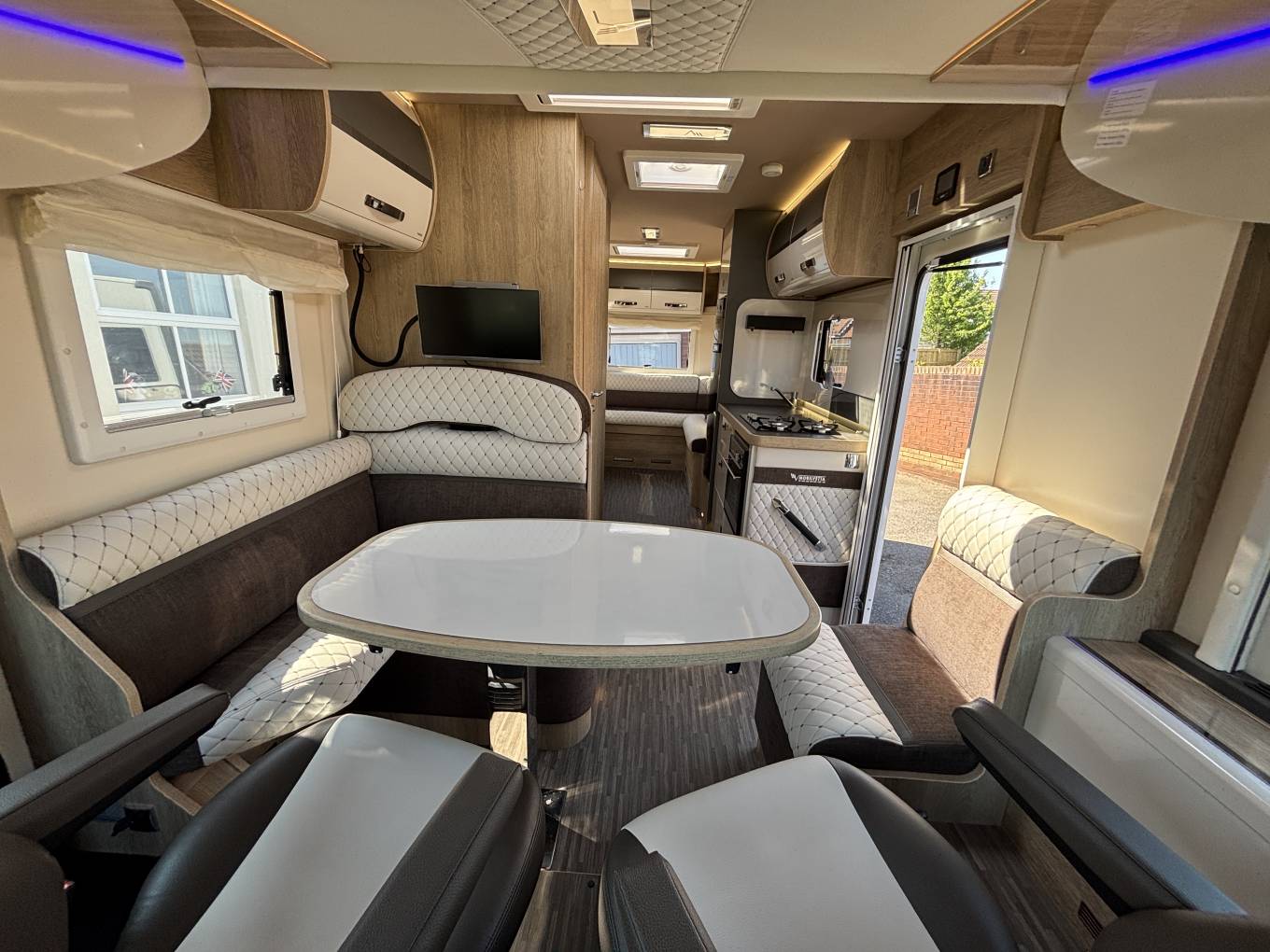 Features include: air conditioning, a 120W solar panel, 100Ah lithium leisure battery, ALDE wet heating/hot water system, alloy wheels, and a Gaslow system with twin 11.5kg bottles. Entertainment is covered with the Xzent multimedia unit and Oyster Satellite System - A more in-depth list of the specification can be found on the extended file link.
