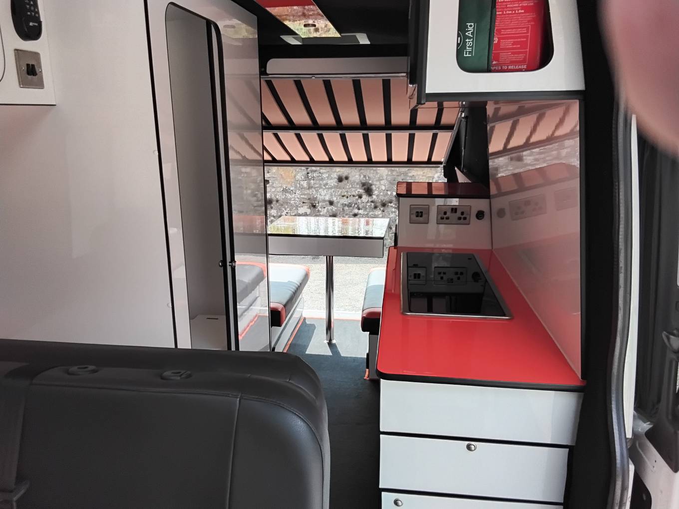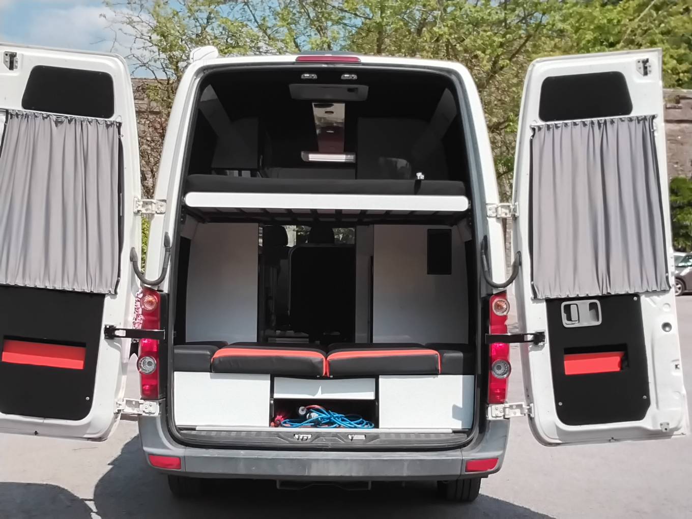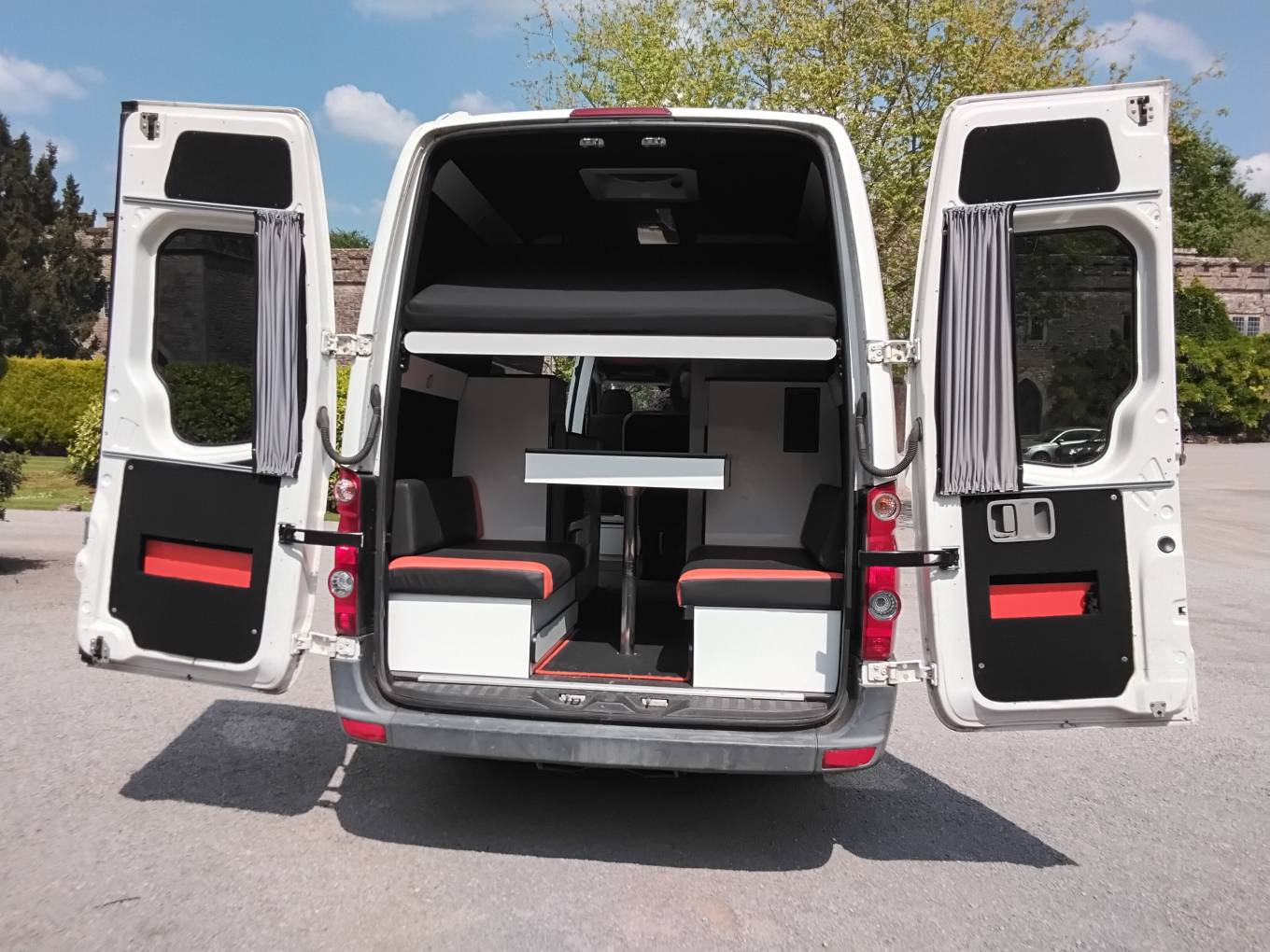 Step inside the ultimate travel companion for a larger family – a VW Crafter like no other. This 6-berth (5 seat belt), marvel blends German engineering with an ingeniously crafted interior, maximizing space, comfort, and versatility. Whether you're off-grid or parked up at your favorite coastal escape, its clever layout transforms seamlessly from daytime living to restful nights for the whole family.