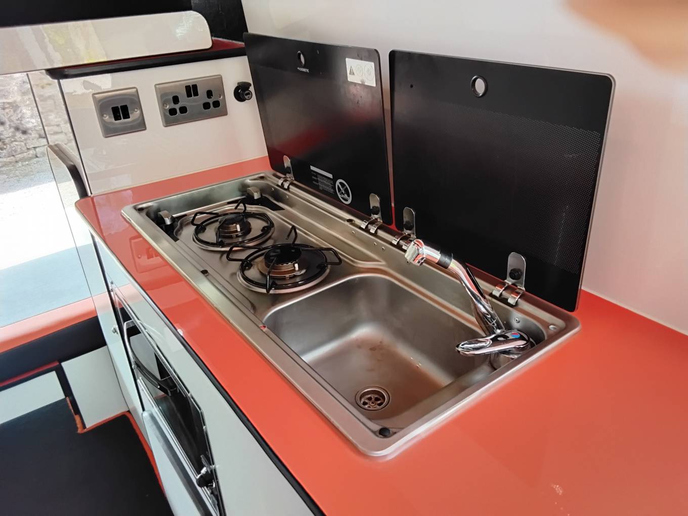 - Dometic Two ring gas hob, oven, grill and pull out fridge or freezer