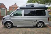 On the outside, you’ll find a Fiamma wind-out awning, alloy wheels, rear tow bar, and a tailgate-mounted bike rack. There’s also a secure safe under the passenger seat. The van comes with two full sets of keys, full service history, reversing camera, cab air con.
