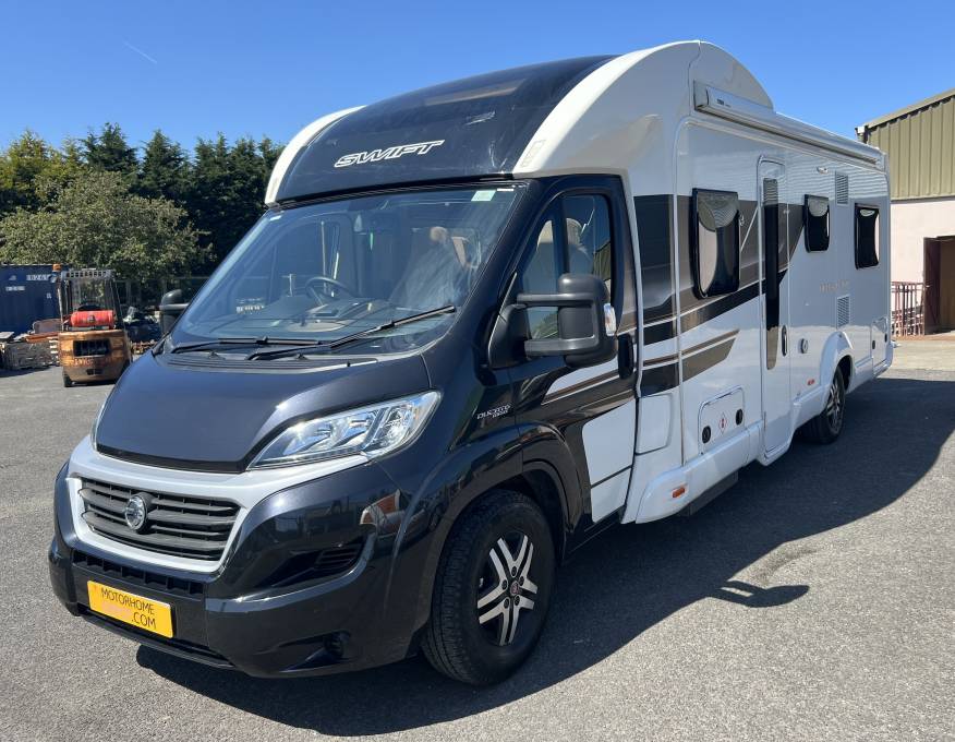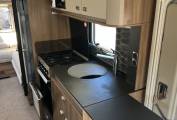 Other features include, ALDE central heating, habitation door flyscreen, solar panel, several 240V and USB connections. It is just over 8 metres long and with GVW of 4250kg requires a C1 licence to drive it.