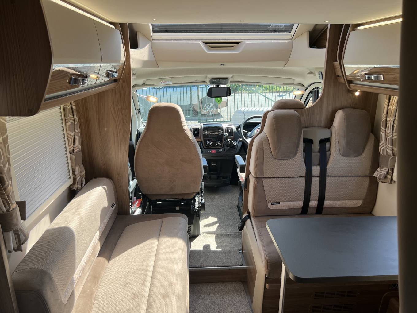 The dinette has 2 forward and 2 rear facing travelling seats, all with full seatbelts. The table can be used to create a further double bed